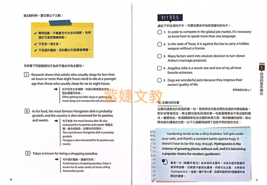 Unit 1 段落的基本概念