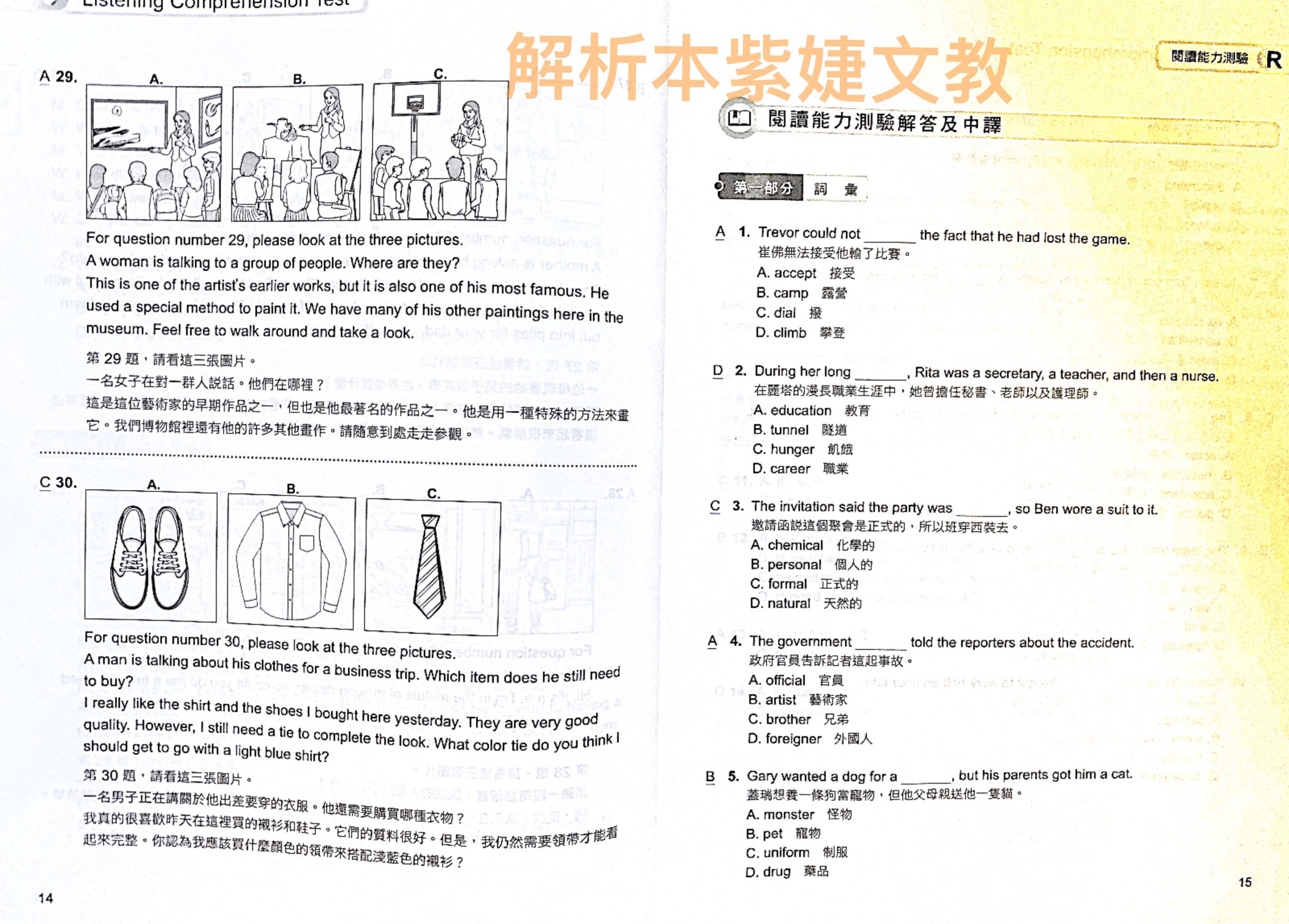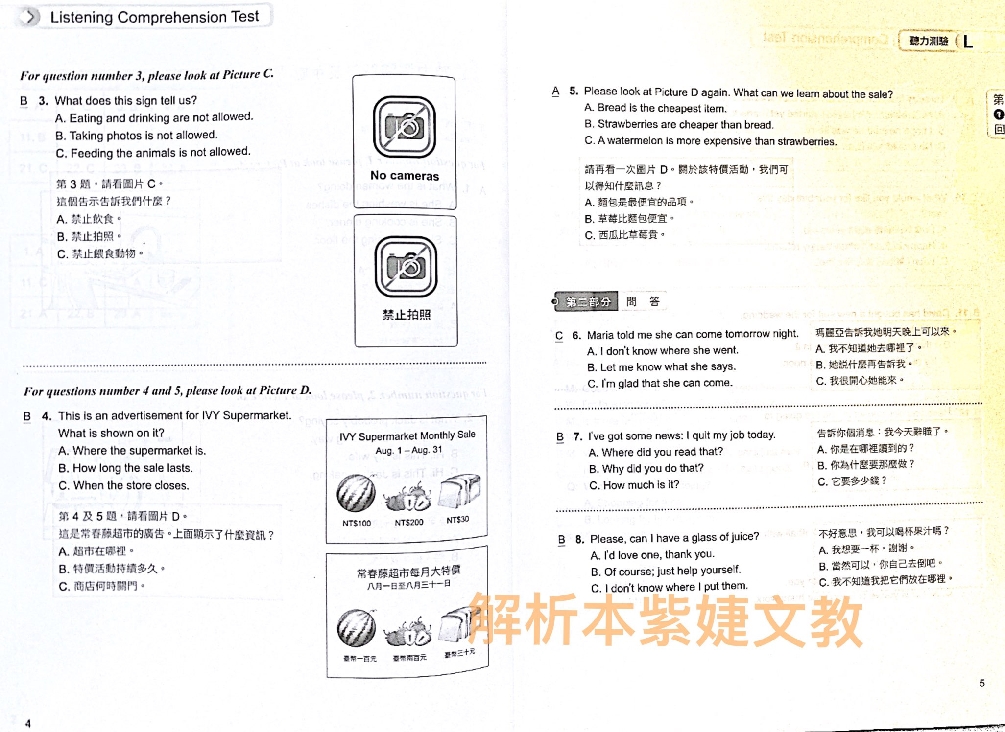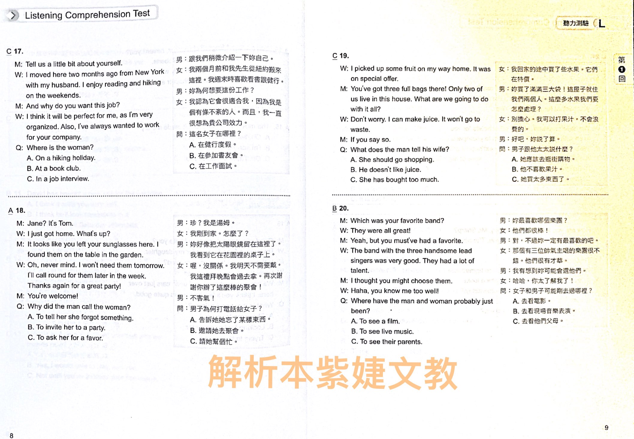 題目難度稍高於正式考題,聽力測驗速度較正式考題略快,並由專業外籍錄音老師錄製,讓你臨場應試無往不利!