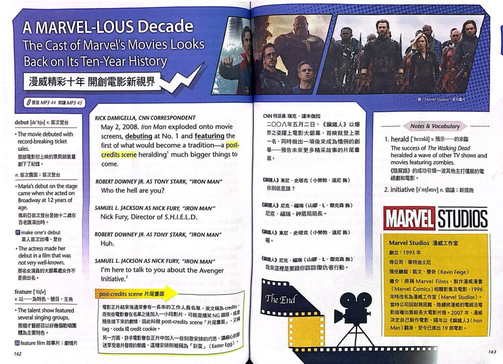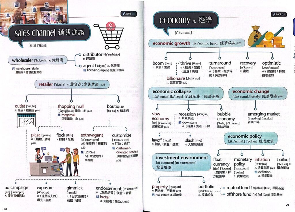 本書在各類別英語新聞報導前,先以「單字聯想」的方式,幫助讀者有系統的學習此類別新聞的常用詞彙。接著,在新聞報導中採中英文對照方式,並在新聞的右側詳列單字片語及相關延伸說明;左側則是提供各類新聞重點單字的例句並補充同反義、衍生字或相關句型說明,讓讀者能深入了解其用法及含意。