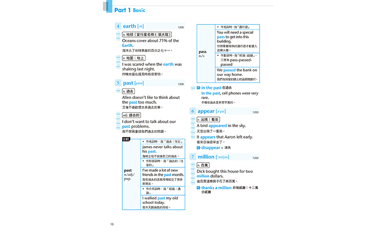 收錄教育部所公布國民中小學語文學習領域中「參考字彙表」的常用2000字詞,清楚標示單字在歷屆會考中出現過的年度。各字彙除提供例句外亦精心補充相關字詞,如同義字、反義字、衍生字及常用搭配詞或重要片語等,並比較易混淆字彙及延伸補充相關用法或字尾剖析,提供舉一反三的學習,有助於迅速累積會考字彙量。