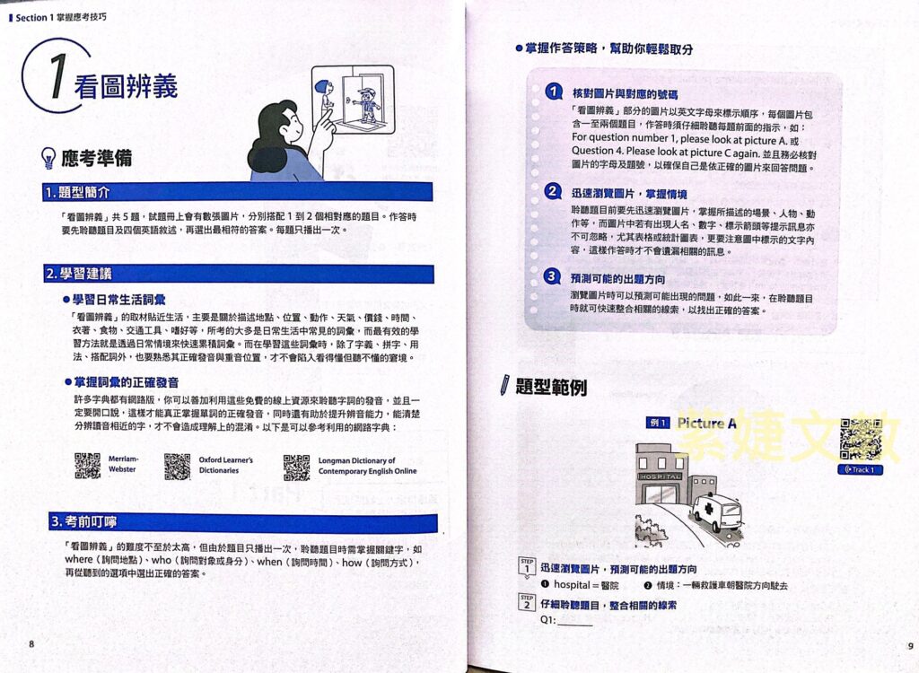 本書所附的朗讀MP3,掃描QR code或至LiveABC官網下載MP3聆聽專業人士錄製的聽力題,訓練英語聽力能有效訓練聽說能力,從容應試。
