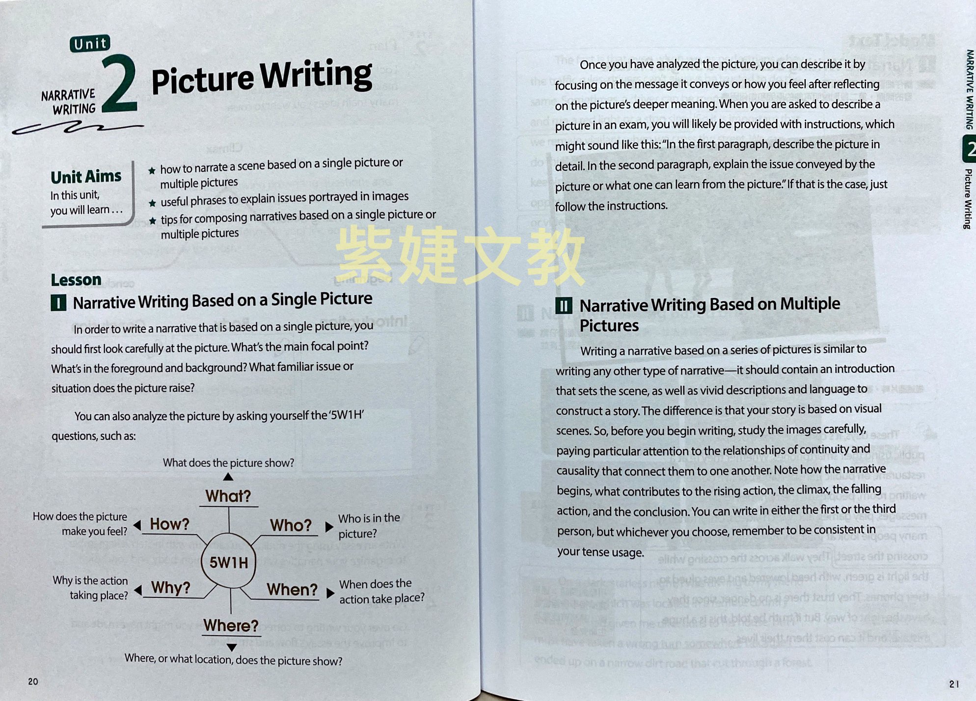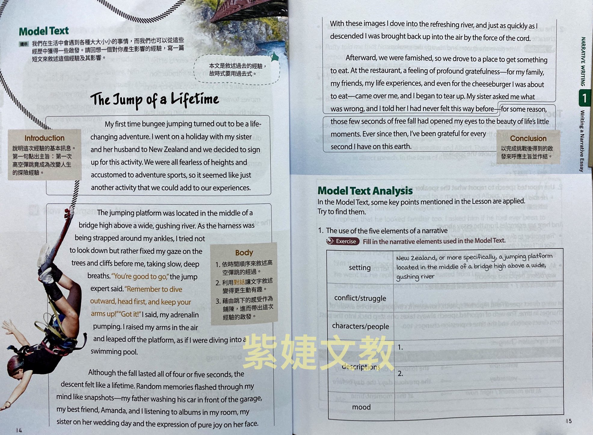 用淺顯易懂的英文帶你瞭解敘述文、應用文、說明文、論說文的寫作概念,透過英文說明同時可以培養文字的鋪陳能力