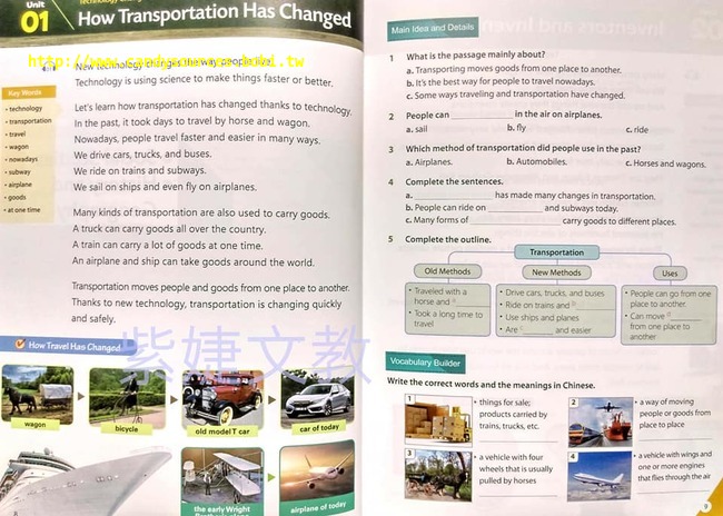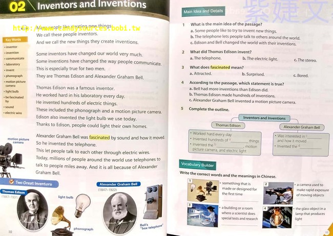 針對課文精心設計題型,練習閱讀理解技巧,包含找出文章的主旨(main idea)、細節(details)。另有圖解式大綱(outline)整理,協助掌握文章架構。