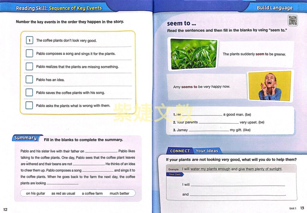 ❸ 內容活動及圖片引導關鍵詞彙與概念,培養閱讀及語言技能。