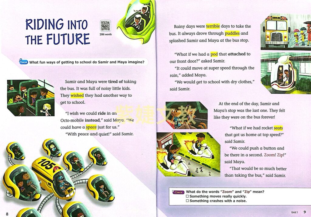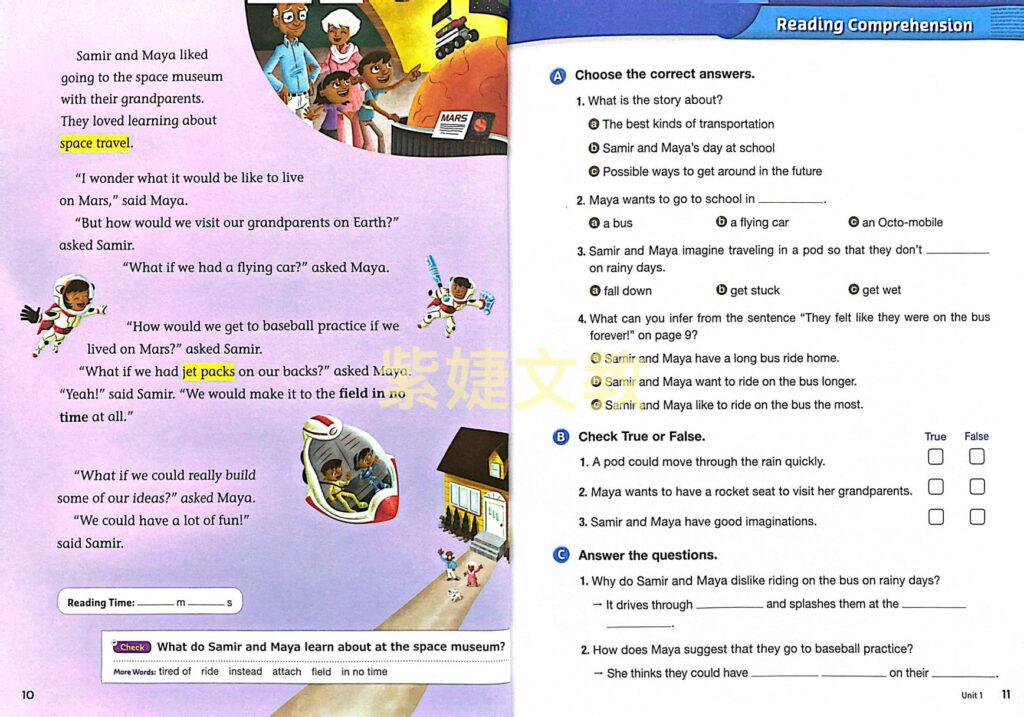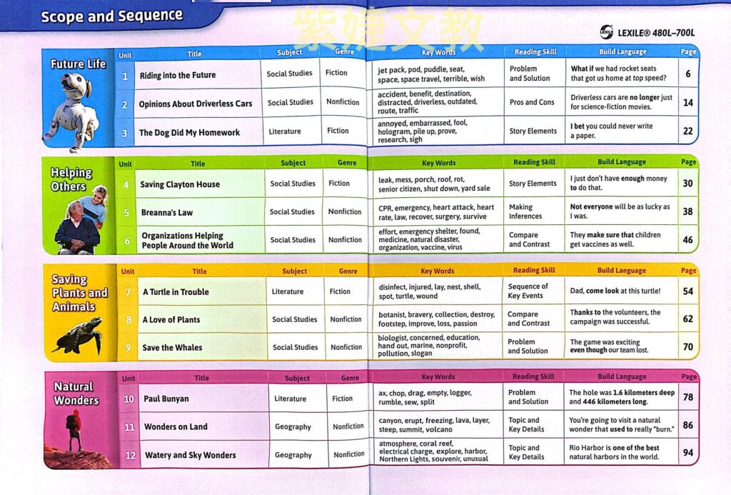 ❷ 主題文章符合SDGs議題,內容取自美國小學教材 ,兼具 Fiction及Non-fiction,精心設計理解問題,幫助學生熟悉內容。