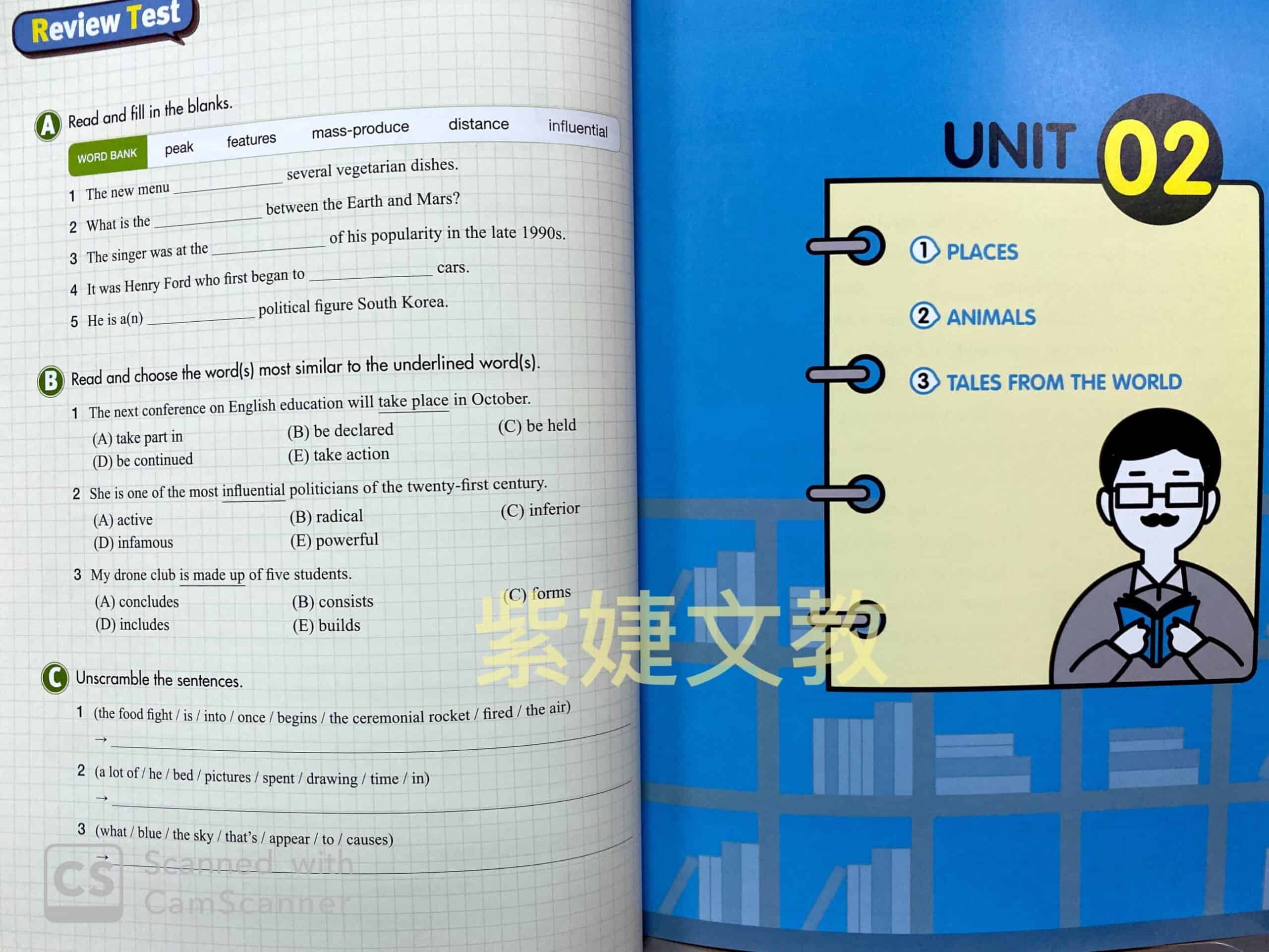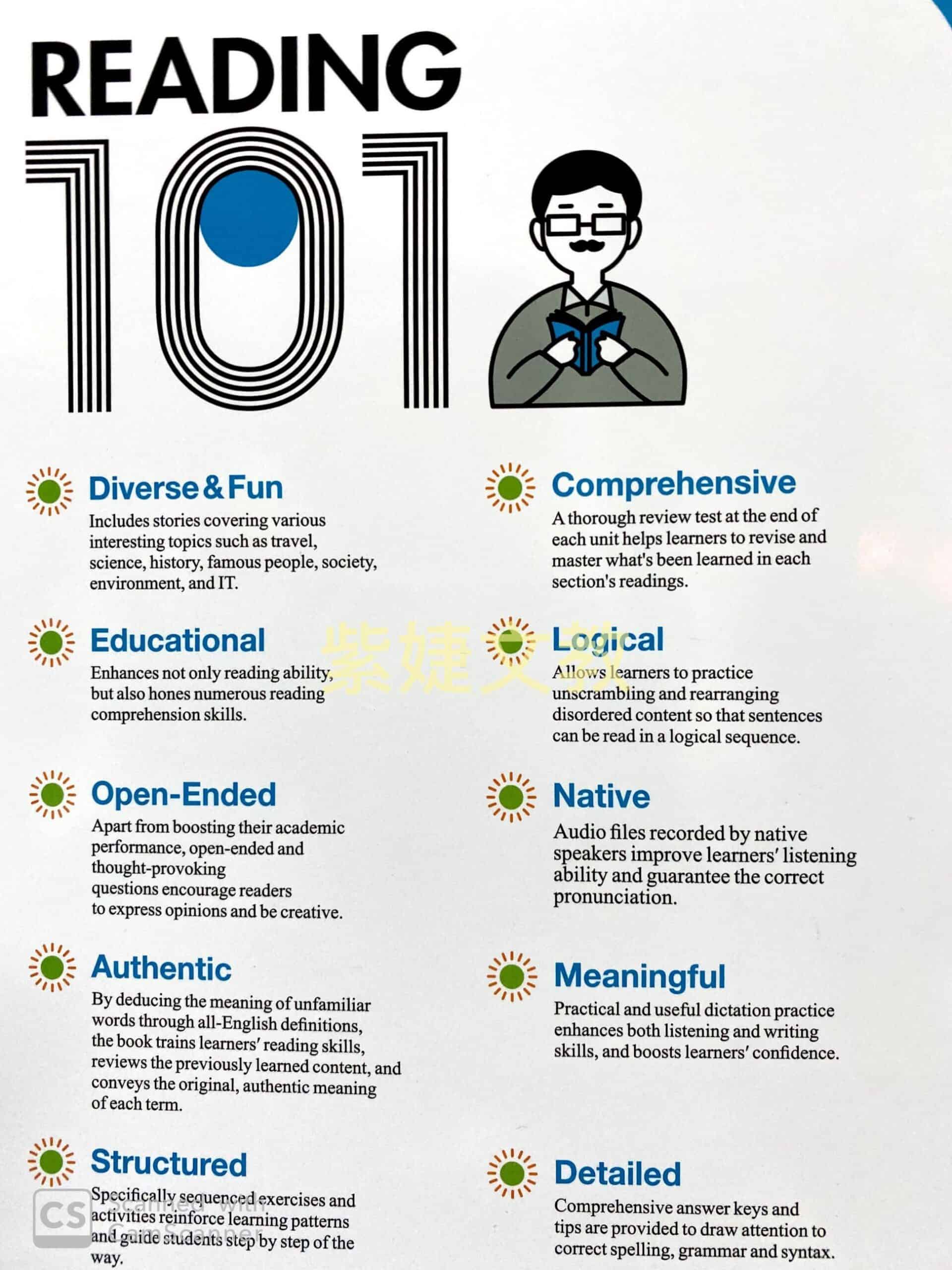 # 練習多樣豐富:包含讀前引導、克漏字、字義配對、閱讀理解問題、聽力填空等