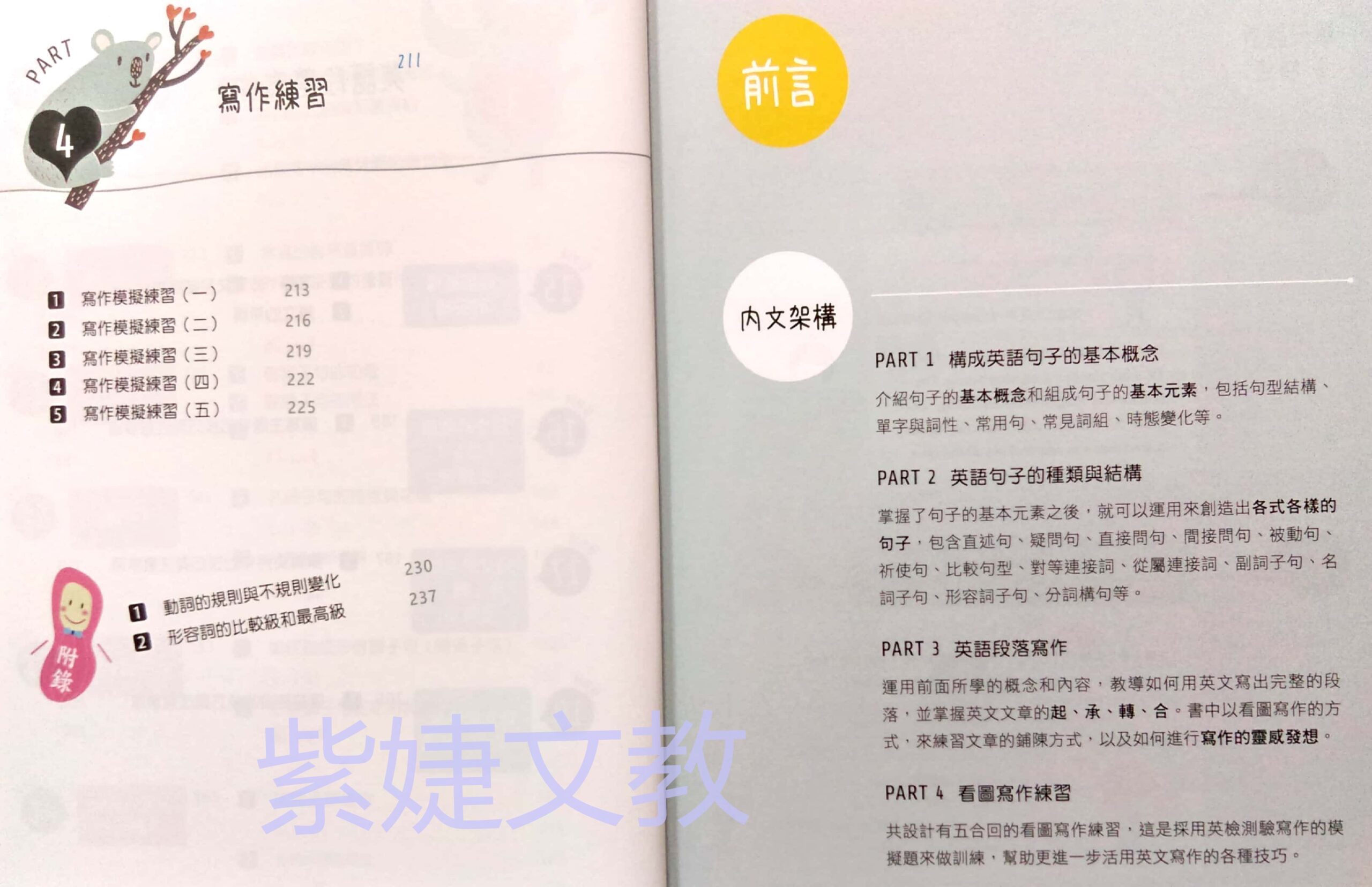 從英文單字到基本句型,從句子的結構到文章的種類,說明詳細,幫助徹底打好英文寫作的基礎。