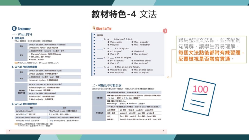 - 測驗卷(題庫編輯軟體、單元卷、複習卷、期中卷、期末卷、全民英檢模考卷)。