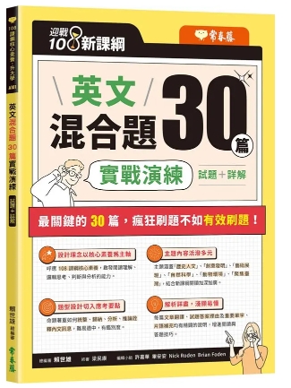 為此,本公司特地由本人帶領編輯團隊研究大考中心公布的新課綱混合題型要點與範例,並請臺北市立麗山高中白玉璽老師給予指導與建議,精心編撰《迎戰 108 新課綱:英文混合題 30 篇實戰演練》一書,期望對莘莘學子有所幫助。