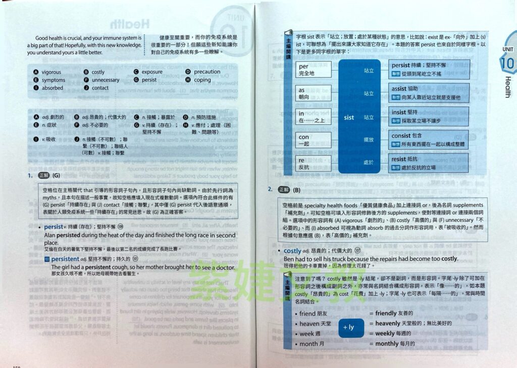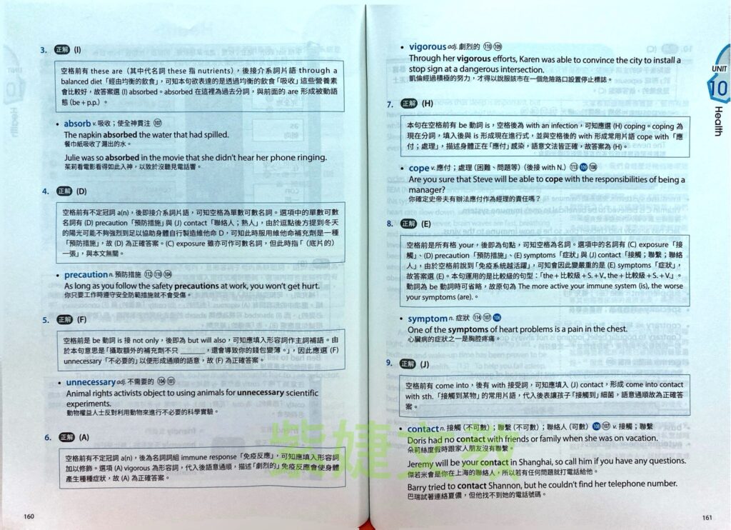 本書於試題篇後附完整「中文翻譯與解析」,基本架構如下: