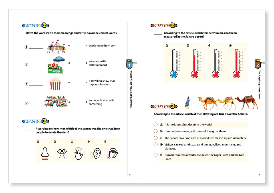 每個單元都提供三個與內容相關的小測驗,包括單字測驗和閱讀理解等不同題型。希望透過這些小測驗來幫助更加熟練運用書上所學的語言知識。