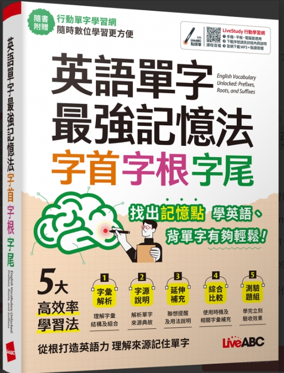 學習一門語言,就像踏上一段探索之旅。單字是沿途不可或缺的基石,但許多人在記憶單字時,往往因反覆背誦而感到辛苦。本書希望提供一條不同的學習路徑⸺透過字首(prefix)、字根(root)、字尾(suffix)的結構,將零散的單字串聯起來,幫助讀者建立系統化的學習地圖。字首如同方向的標誌,能快速掌握單字的語意範疇;字根則揭示單字的核心意義與語源邏輯;字尾則呈現詞性的變化與語法功能。這樣的分類不僅有助於記憶,還能讓讀者在遇到陌生單字時,透過構詞規則推敲字義,使學習變得有趣且更有效率。