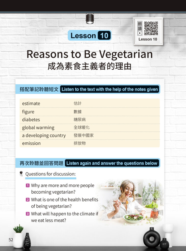 1. 暖身單元我們結合聽力訓練,以重複聆聽並且搭配關鍵字詞與簡單問題的方式訓練讀者開口說。
