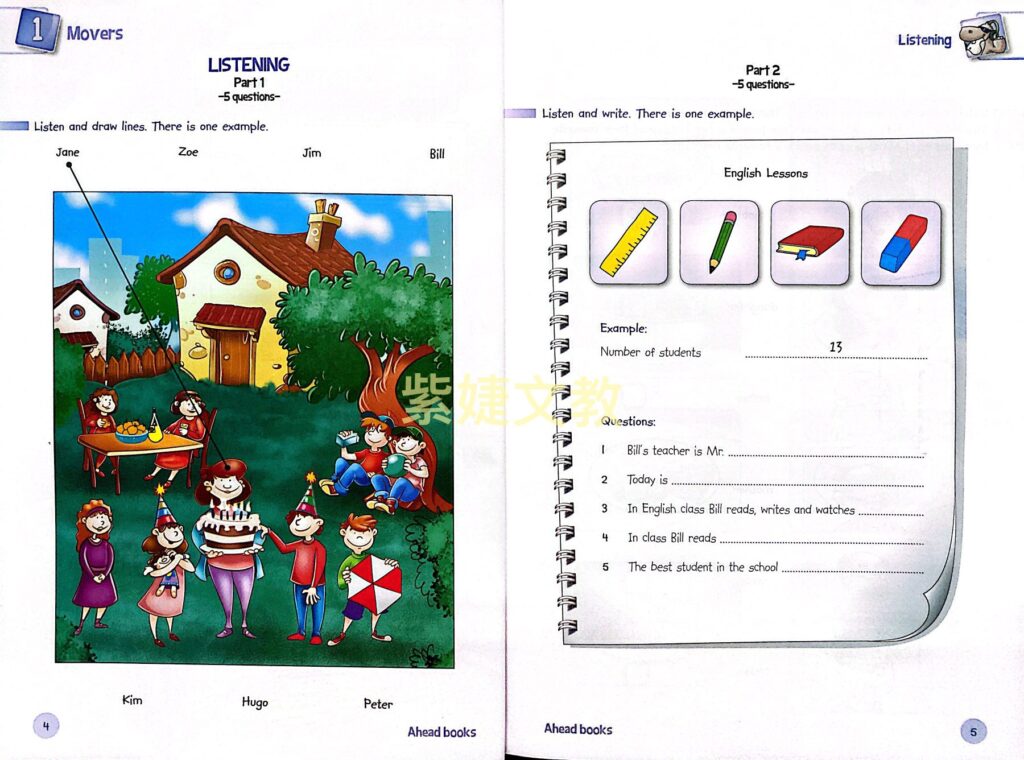 前三本為 Cambridge exams 教材,內容符合2018新制考試。每本有5回模擬試題,內容搭配色彩豐富的插畫設計,適合英語初階的孩童使用!