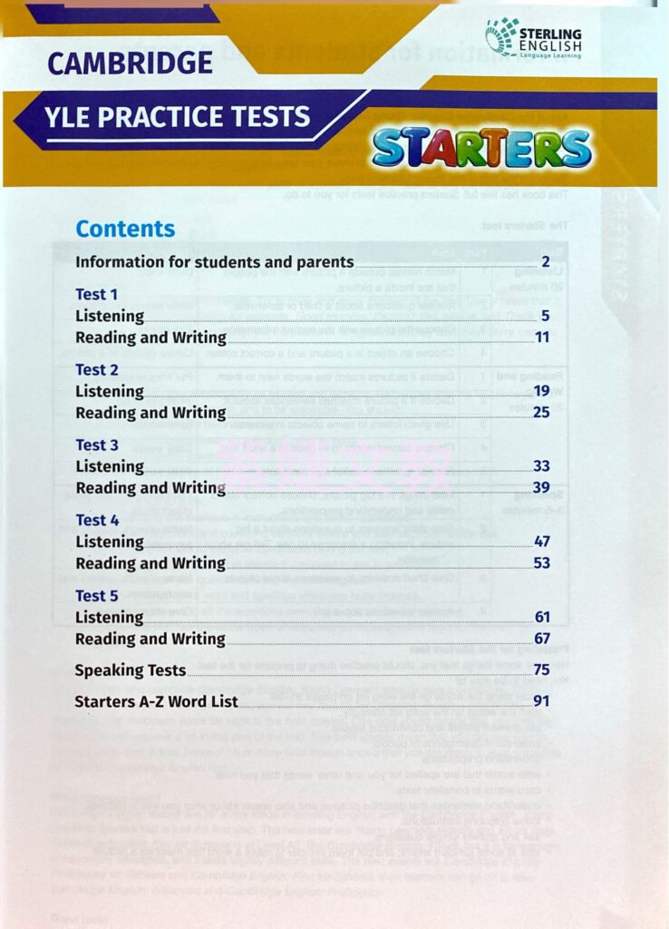 - A-Z Word List which contains all the vocabulary students must be familiar with to do well in the Starters test