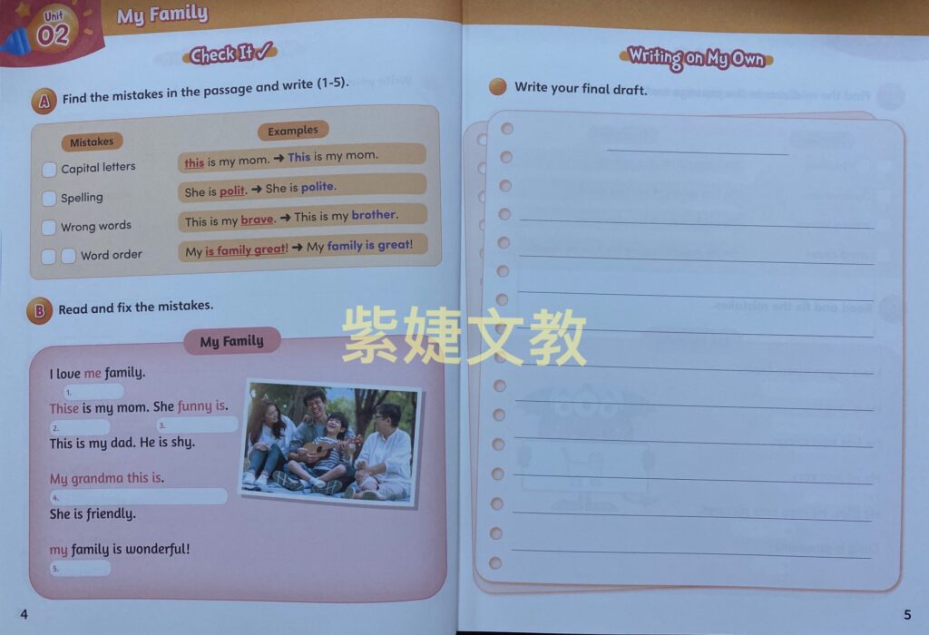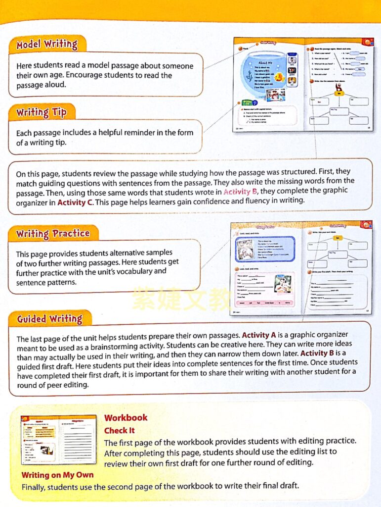 - Fundamental writing patterns and sentence structures highlighted in each unit to build students’ language skills