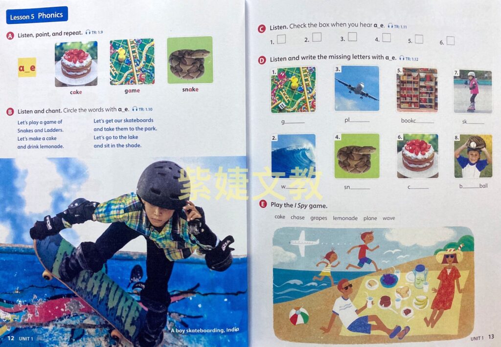 • Songs, chants, and games practice and reinforce concepts and essential language in a playful and meaningful way.