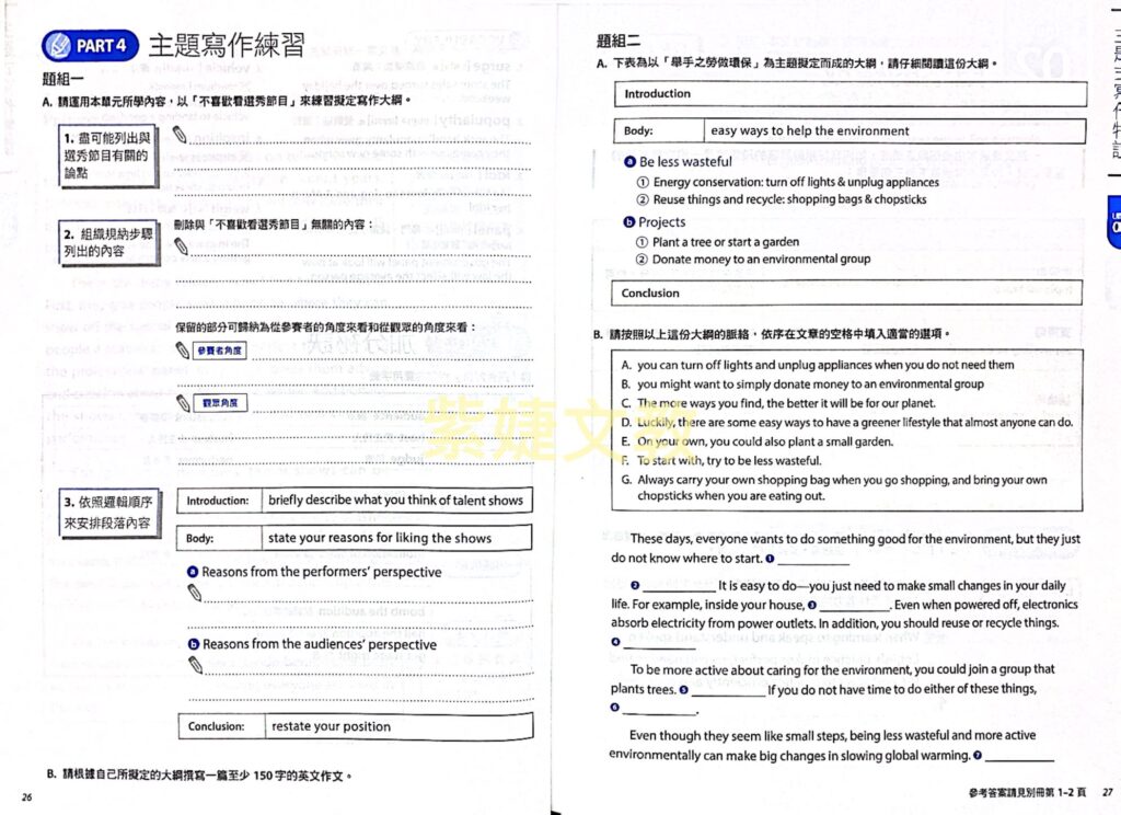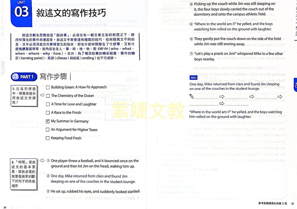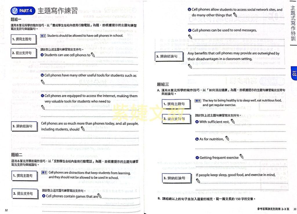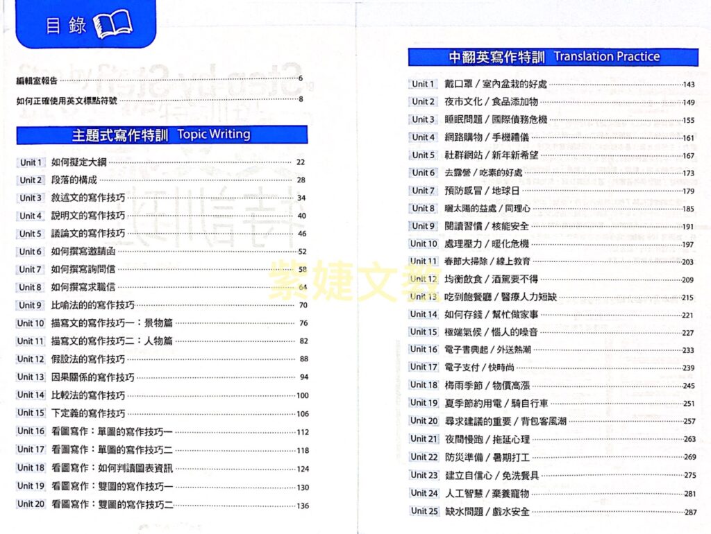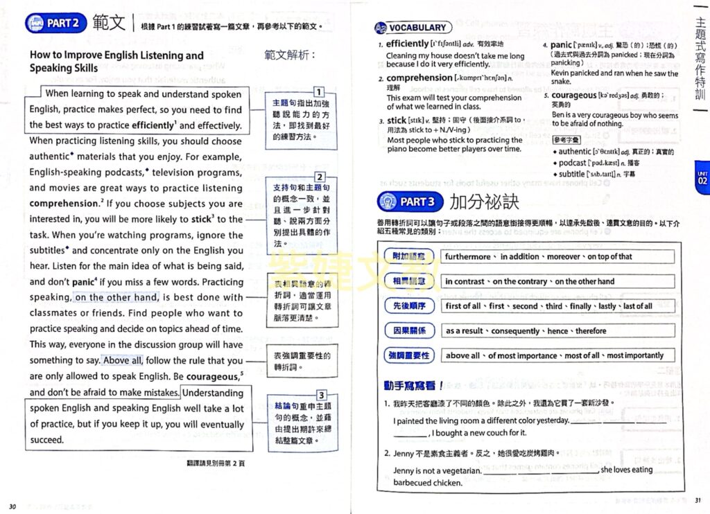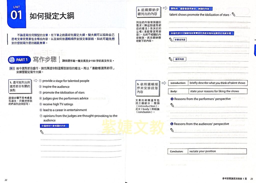 n 透過單元主題引導式練習,逐步強化寫作實力。
