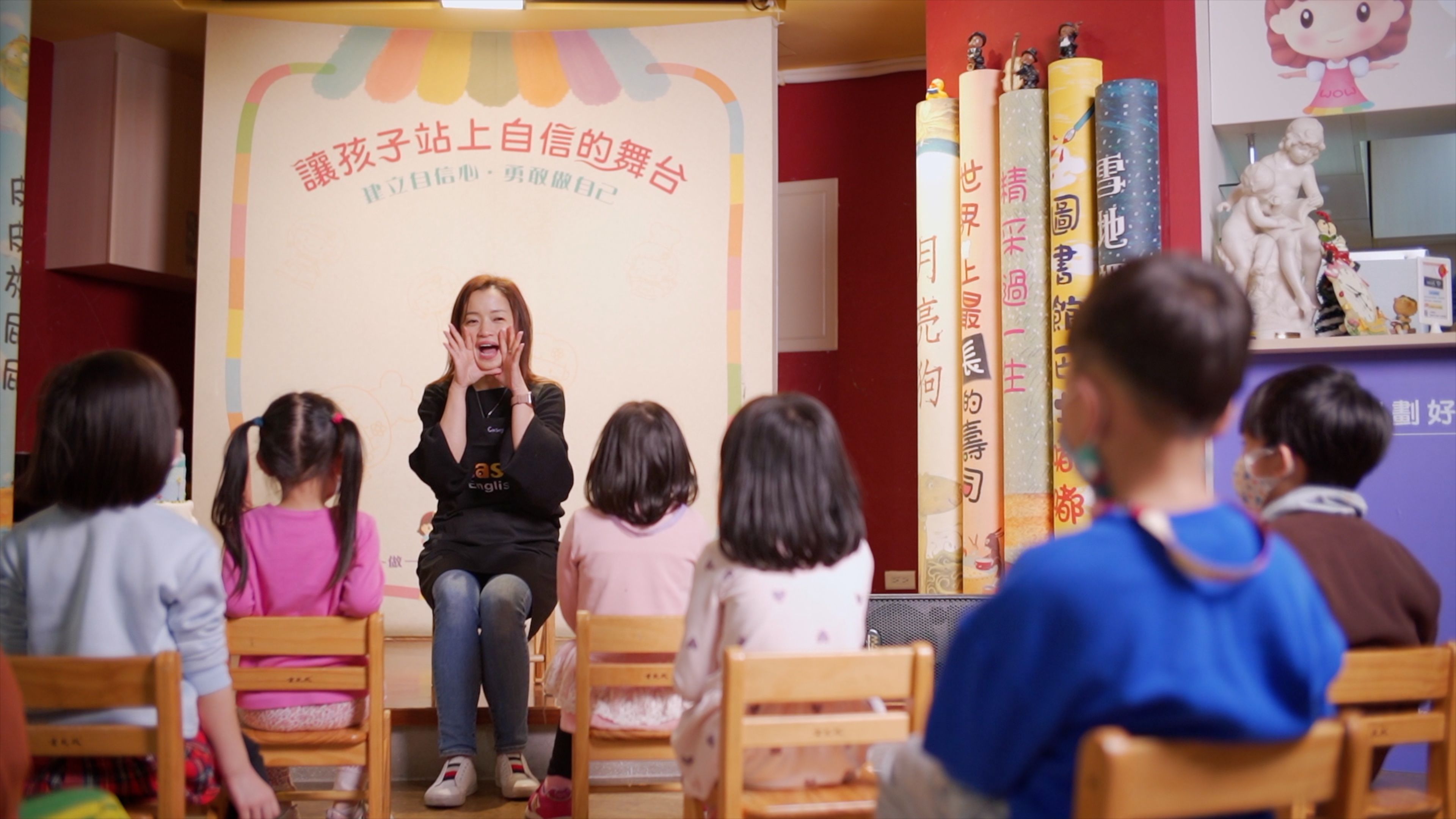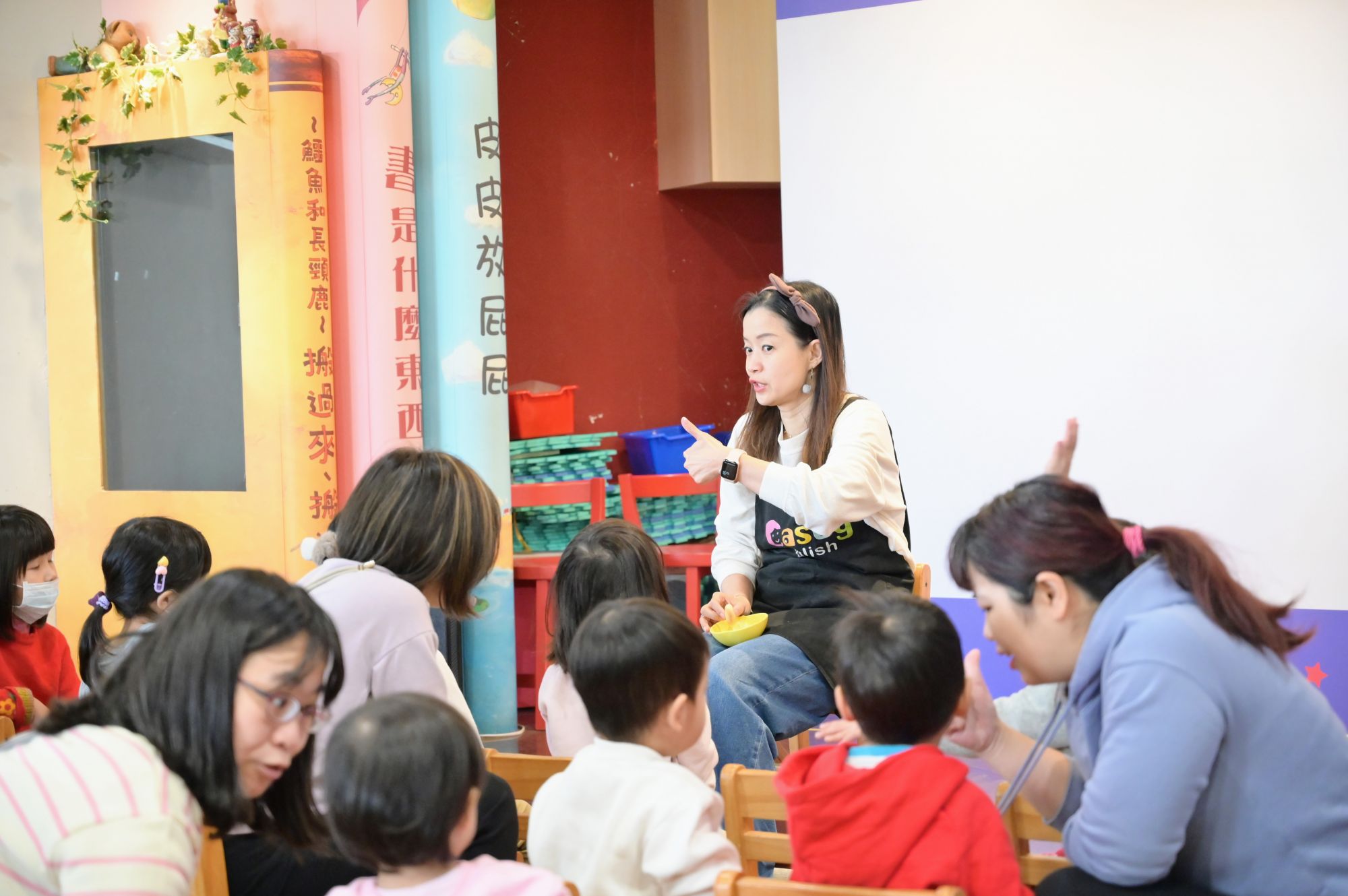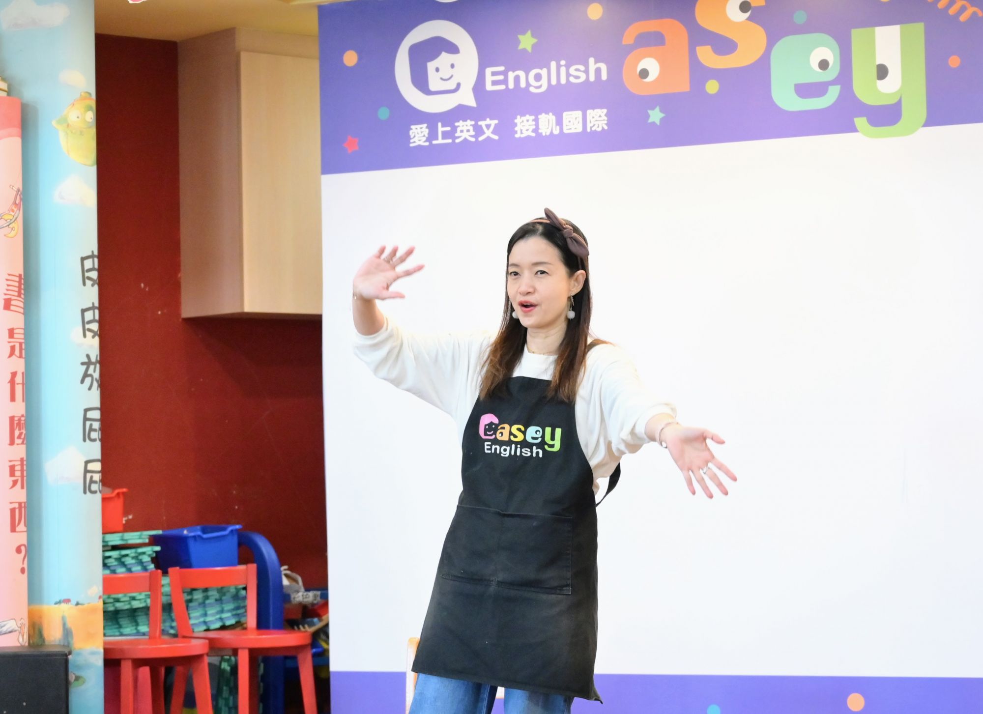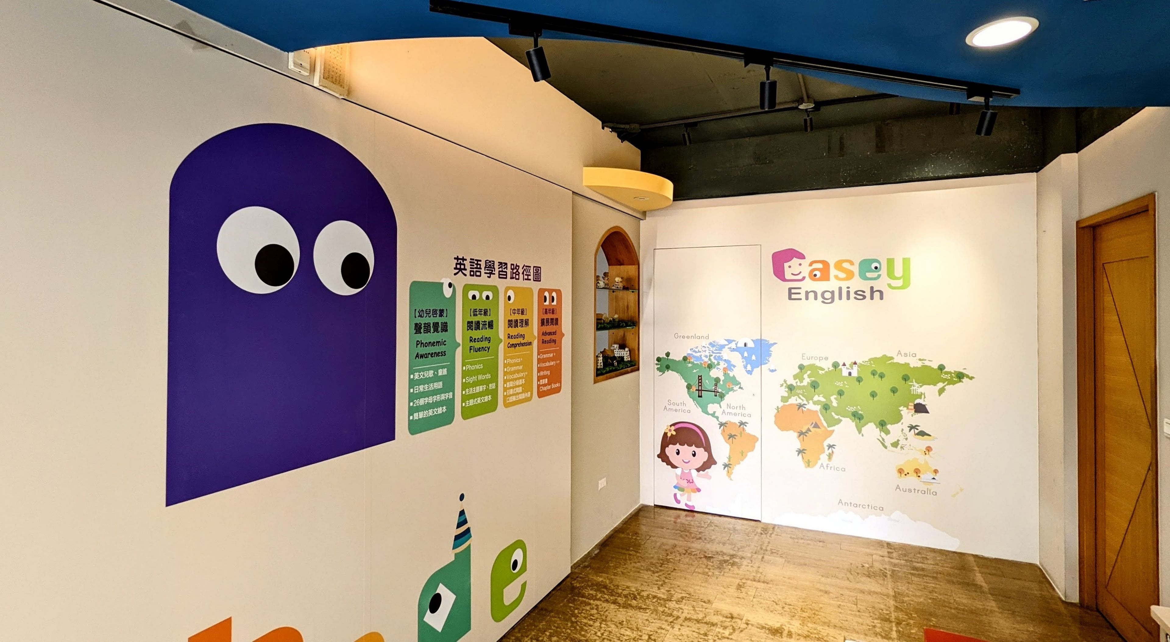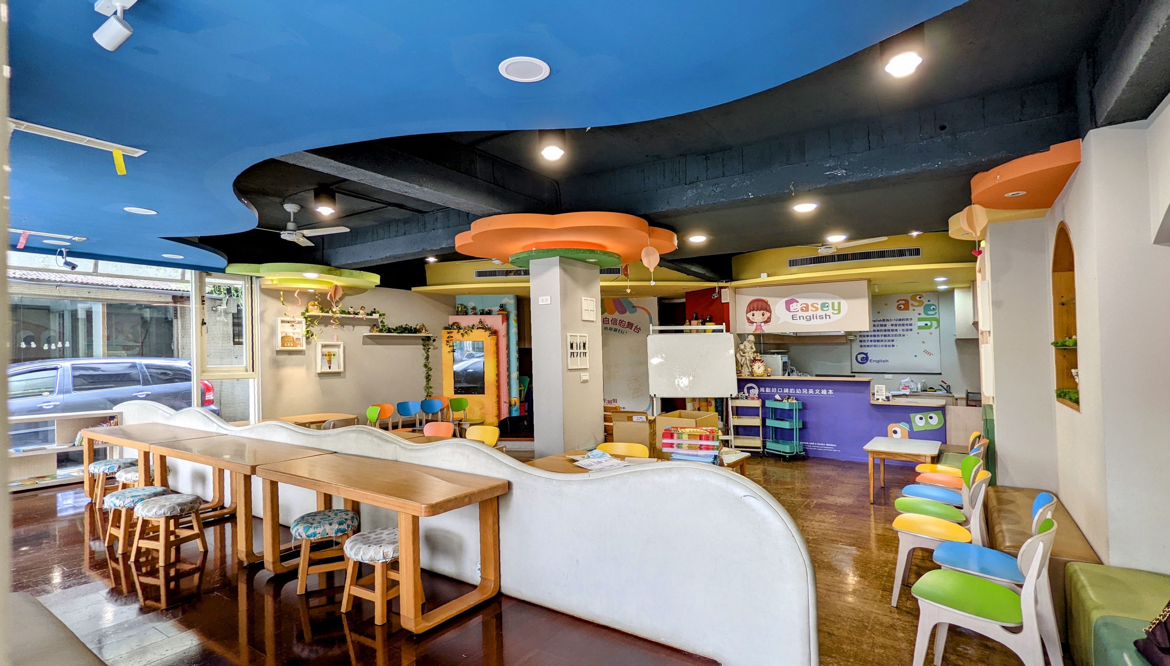 走進Casey English教室,繽紛的牆上擺著滿滿的英文繪本、讀本,迎面而來是Casey爽朗親切的招呼,一句朝氣蓬勃的「Good Morning」,彷彿瞬間進入幼兒故事時間的招牌開場,回應著「Good Morning, Casey」的瞬間,才發現自己好像已經準備好要聽Casey說故事了!