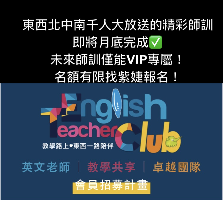 接著東西師訓只專屬English Teacher Club VIP