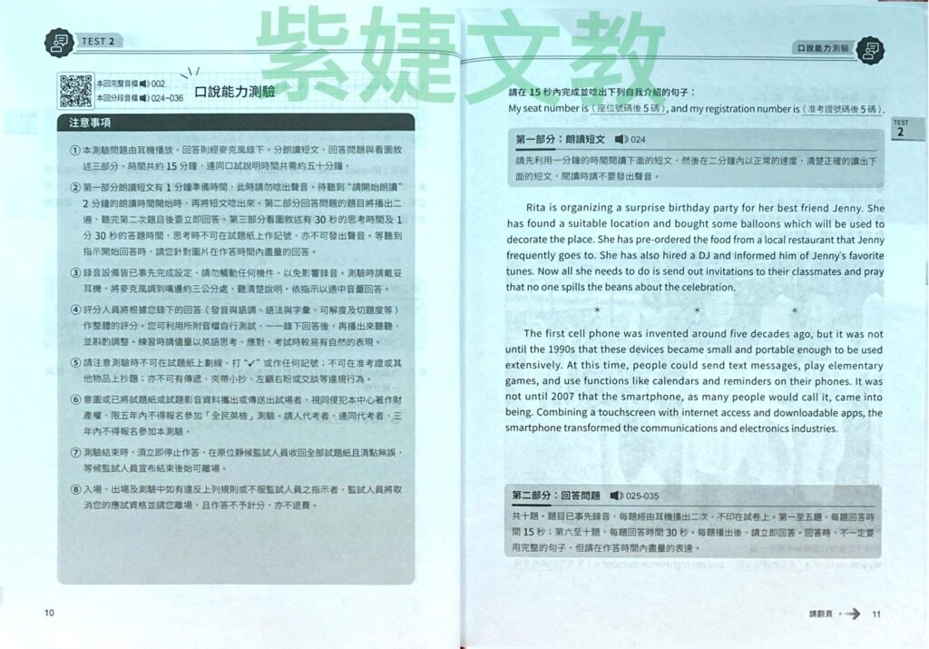 • 口說能力測驗作答時間:15分鐘