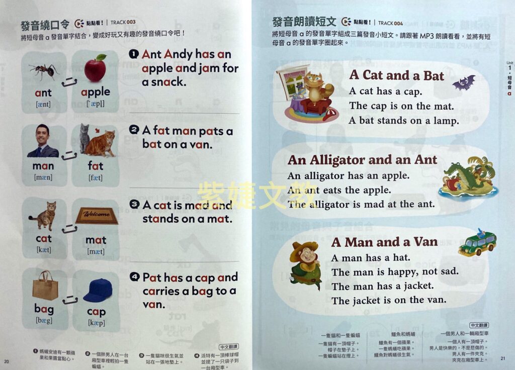 利用可愛的手繪情境圖來帶出類似漫畫感的英語會話,不僅提升閱讀樂趣,也能幫助文字內容的理解。大量的圖片配上簡短的句子也能大量降低對長篇英文文章的排斥。而會話裡的單字、句型、片語、口語和好用句等,能讓孩子自然而然的接觸這些學習內容,讓他們對國中的必背單字和基礎句型等有更深的印象。