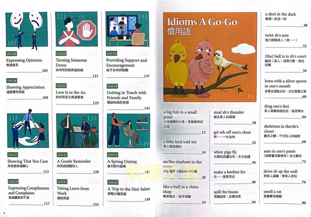 若想說一口道地的英語,除了勤加練習口說能力外,你也可以善用慣用語,讓你的口語表達更像母語人士。本書精心挑選收錄了36個實用的慣用語,在日常對話中經常出現,搭配生動活潑的插畫、典故和簡短對話來幫助你熟悉英語慣用語。