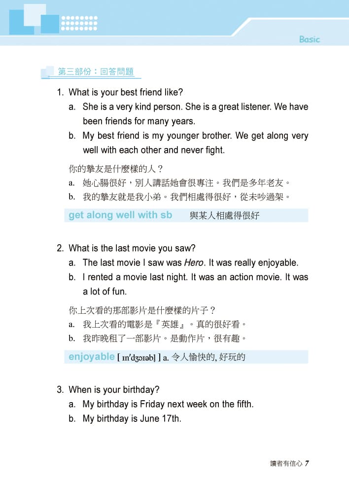 適用程度 : 國中/GEPT初級