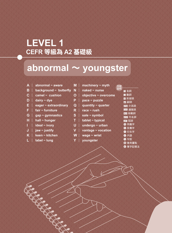 常常臨時想起一個單字卻忘記在哪裡看過嗎?或是覺得查閱單字索引很麻煩?本書右欄有貼心的「前尋後找」設計,看到→符號,表示可以往後翻之後會學到的單字;看到←符號,表示可以往前翻之前學過的單字,讓預習、複習都即時!