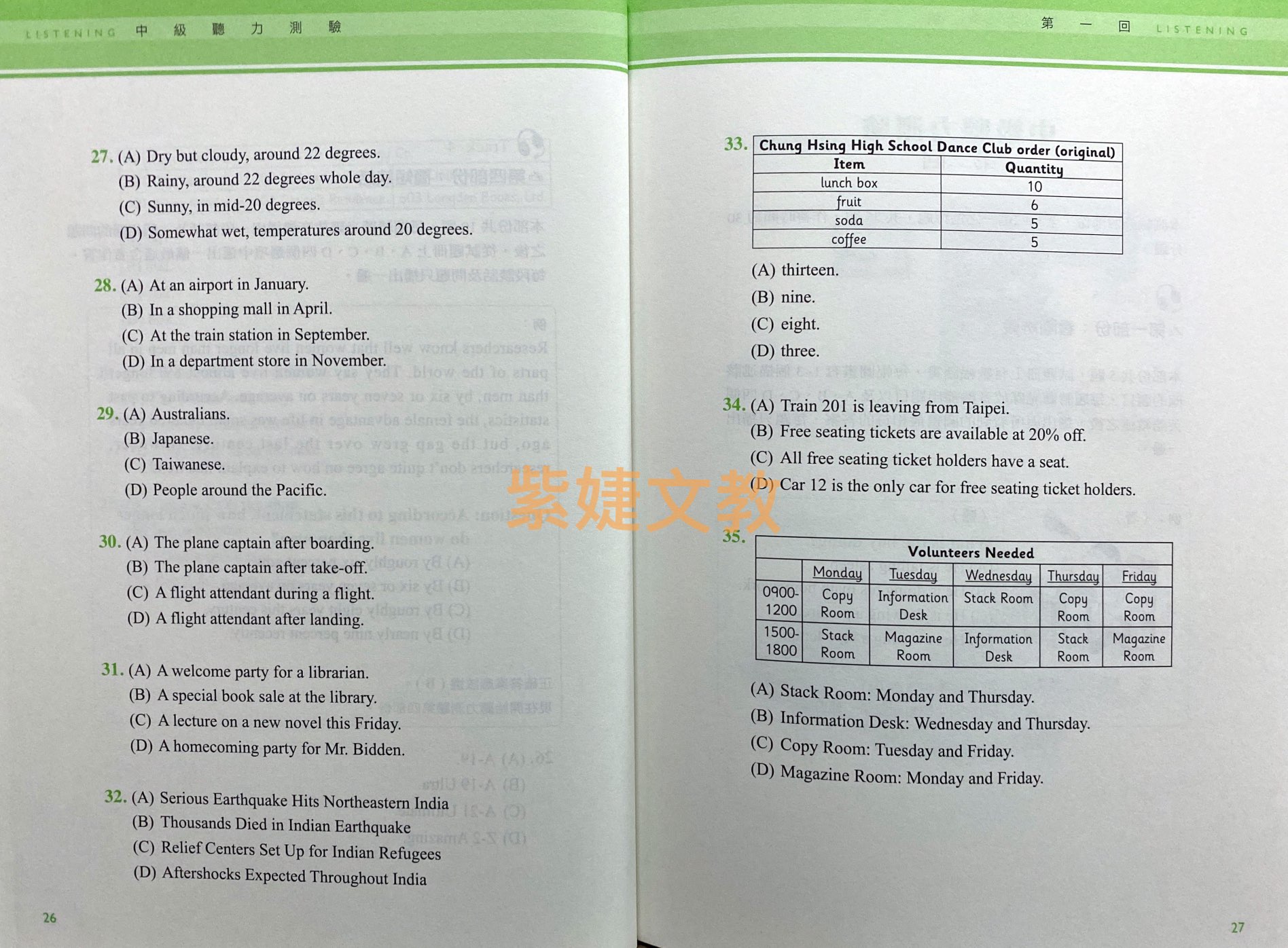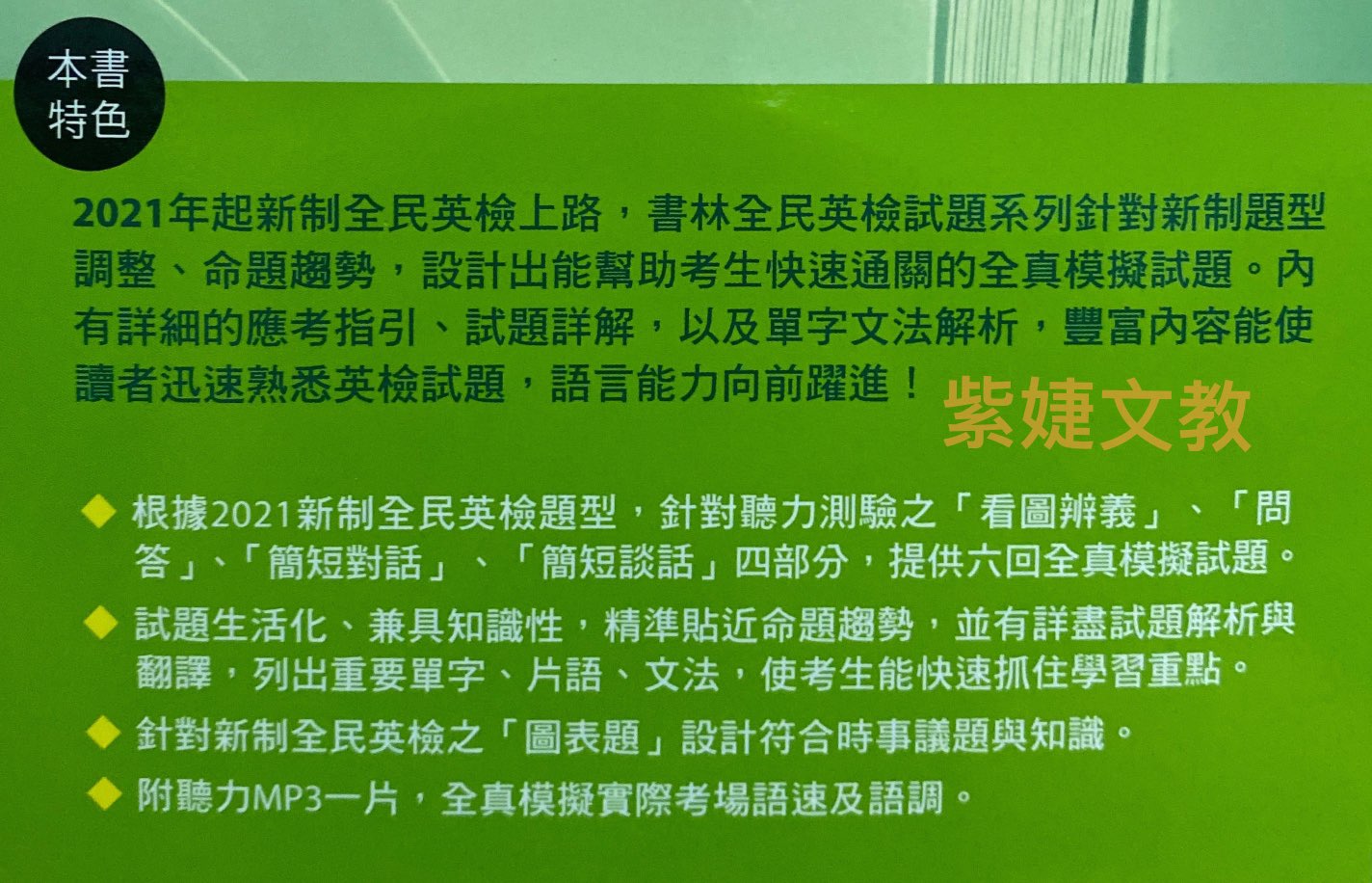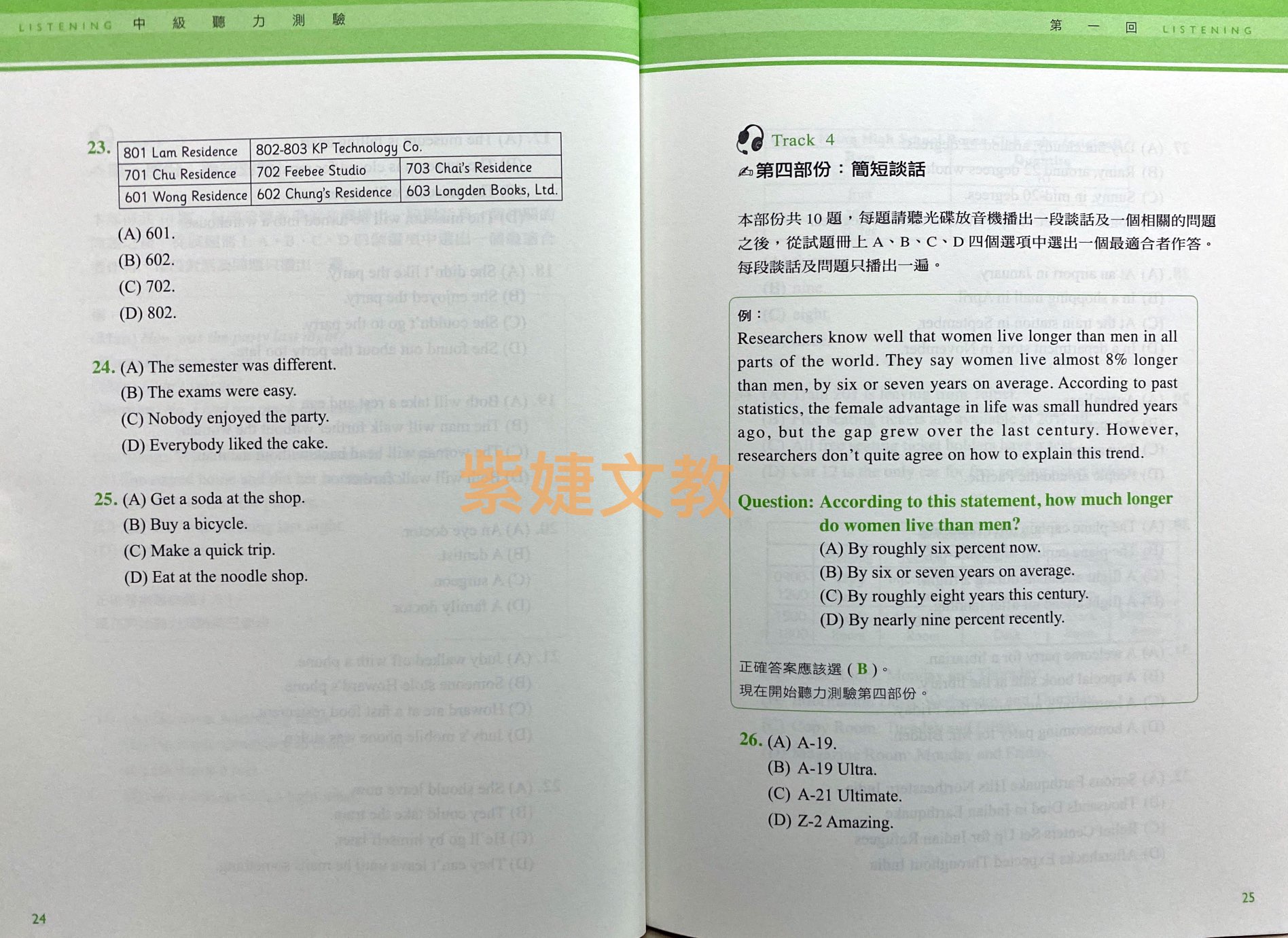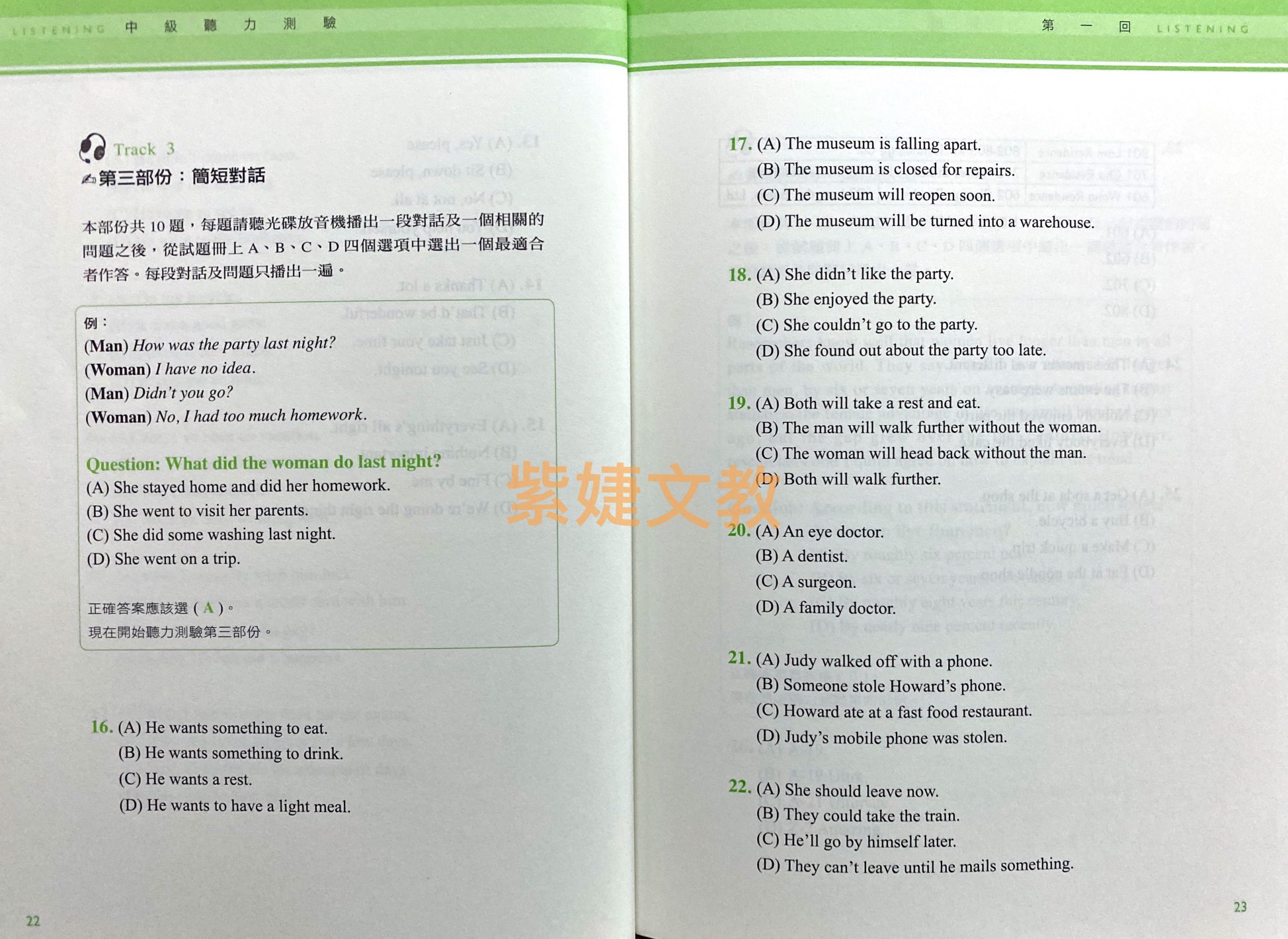 新制全民英檢中級聽力測驗六回全真試題+解析