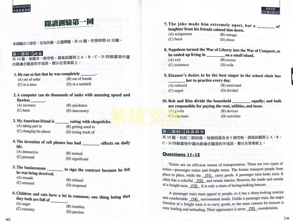 1. 三回完整測驗,模擬臨場考試,增進答題技巧。