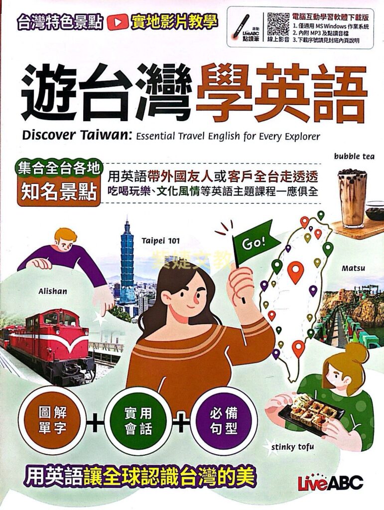 本書分為台灣北部、中部、南部及東部&離島四大部分。各課扉頁先介紹該景點的概況與特色。接著是精美的大圖解,讓讀者能藉由視覺學習的方式來認識單字。然後進入「看影片遊台灣」單元,藉由LiveABC 團隊走遍各地的影片拍攝與介紹,讓讀者也彷彿置身其中在當地遊覽。這個單元亦彙整出「句型焦點」和「旅人實用句」,讓讀者能在自身旅遊或介紹景點時靈活應用。各課程還精心規劃了「知識小站」,比如彙整台灣各地的國家公園與特色、介紹各種海蝕地形、圖解製糖過程、簡介布袋戲角色的分類等,讓人瞬間擴展多樣化的知識領域。書中並不時加入「延伸閱讀」或「旅人加油站」單元,讓讀者能更深入了解當地或迅速掌握值得造訪的景點。