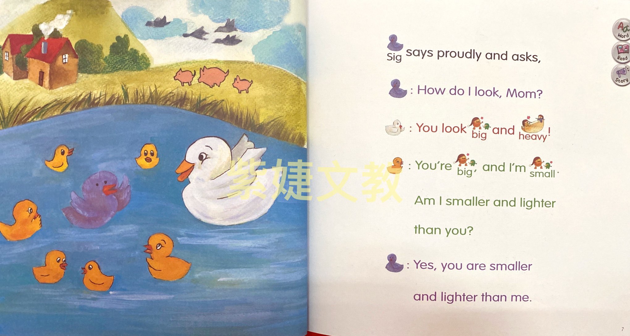 版面:精美大圖呈現閱讀篇章,激發學生的主題背景知識(background knowledge),同時亦降低學習焦慮感。練習題頁面則以簡潔的編排方式,讓教師及學生易於瞭解教學/學習重點。