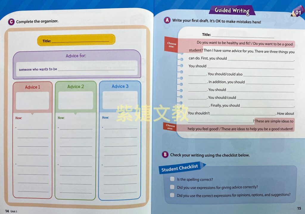 - Fundamental writing patterns and sentence structures highlighted in each unit to build students’ language skills