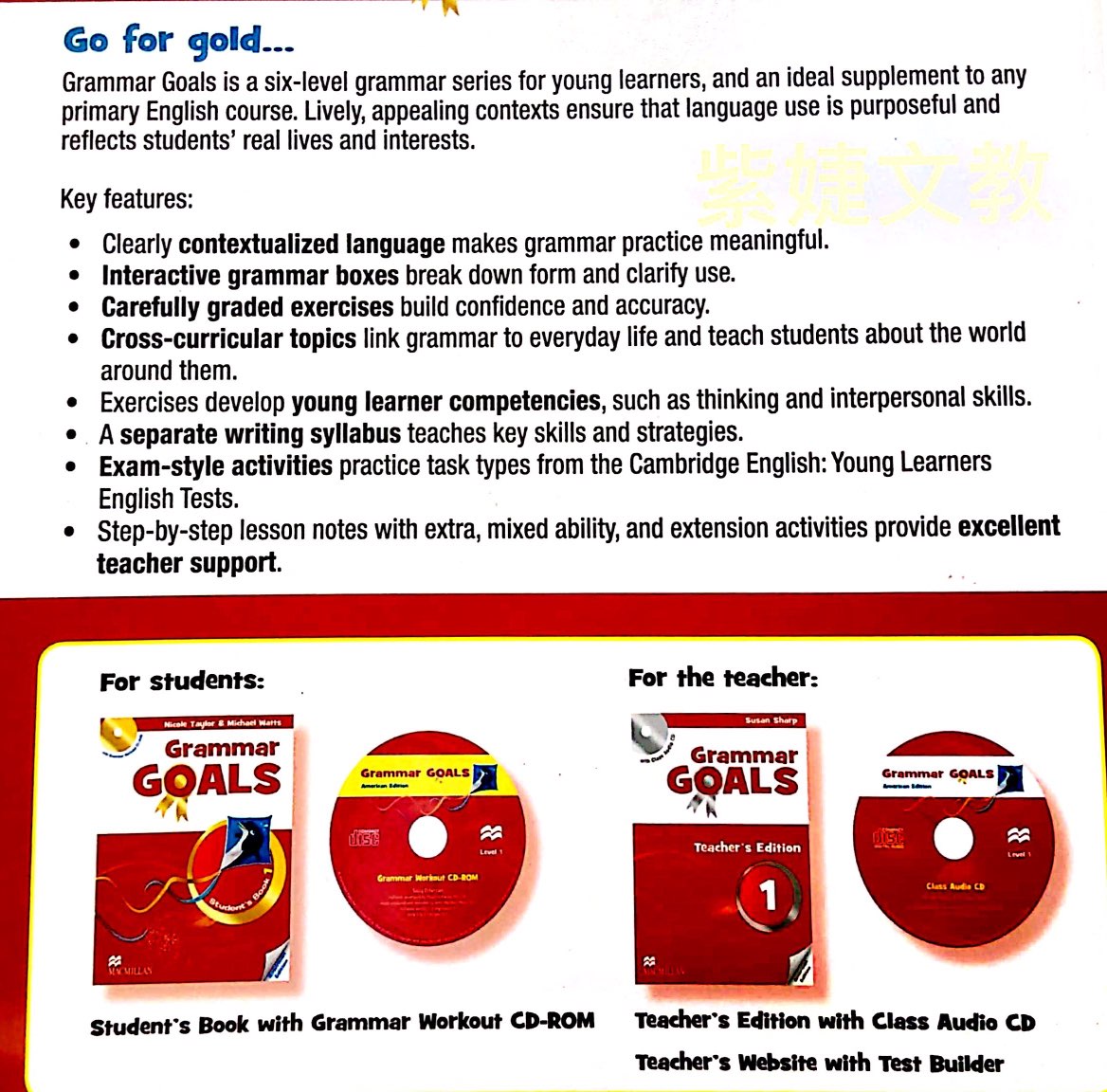 Grammar Goals is a six-level grammar series for young learners, and an ideal supplement to any primary English course. Lively, appealing contexts ensure that language use is purposeful and reflects students’ real lives and interests.