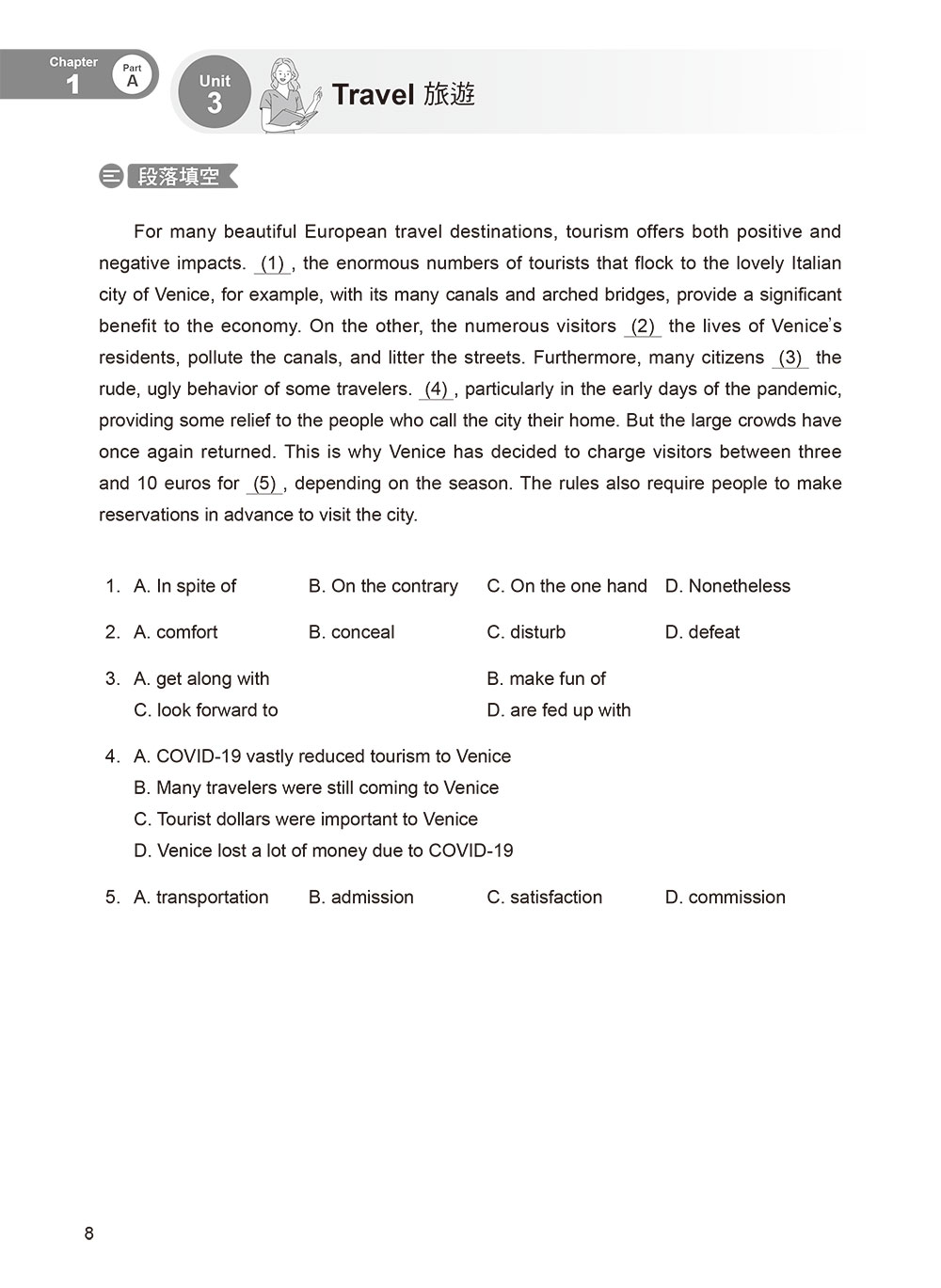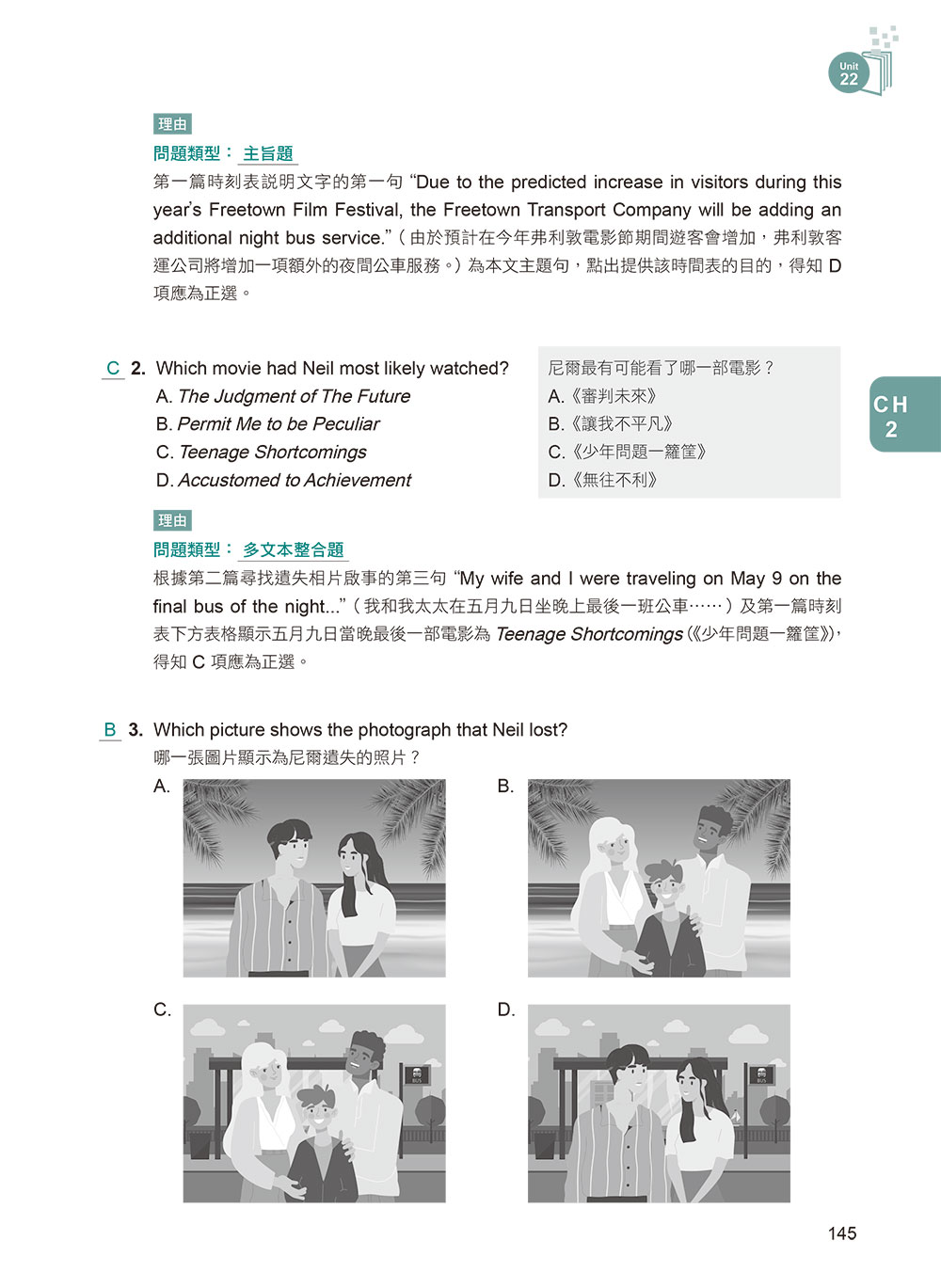 閱讀題型一網打盡:呼應108國教新課綱以「素養」為核心的教育理念,並依據 LTTC 2021 年最新調整的新題型與題數編寫。「段落填空」新增「選項為句子或子句」的題型,而閱讀測驗形式涵蓋「多文本題型(含圖文)」,完全掌握新制命題趨勢。