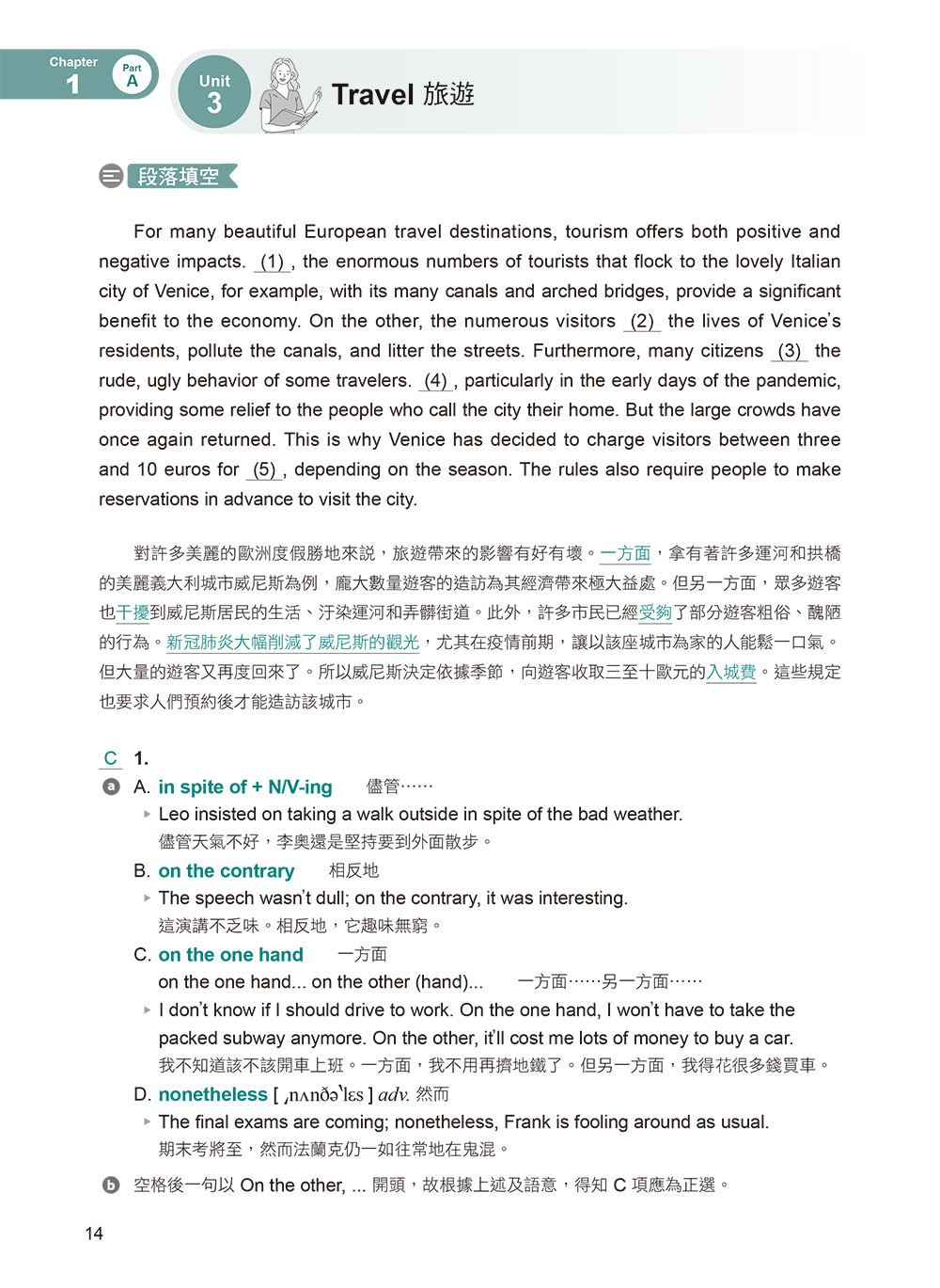 考點分析精準到位:閱讀文本涵蓋生活各層面之題材,包括飲食、旅遊、社交、教育、文化、科技、環保、社會議題等主題,融合英語的學習歷程與溝通方式,經多元層次設計,內容更貼近現代生活情境。