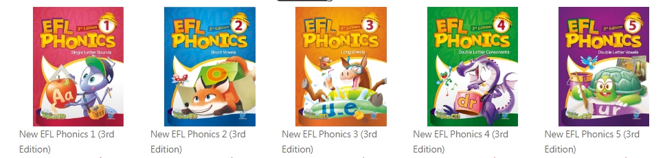 EFL (English as a foreign language) Phonics專為沒有英語基礎的孩子所設計,分五冊,循序漸進來安排課程: