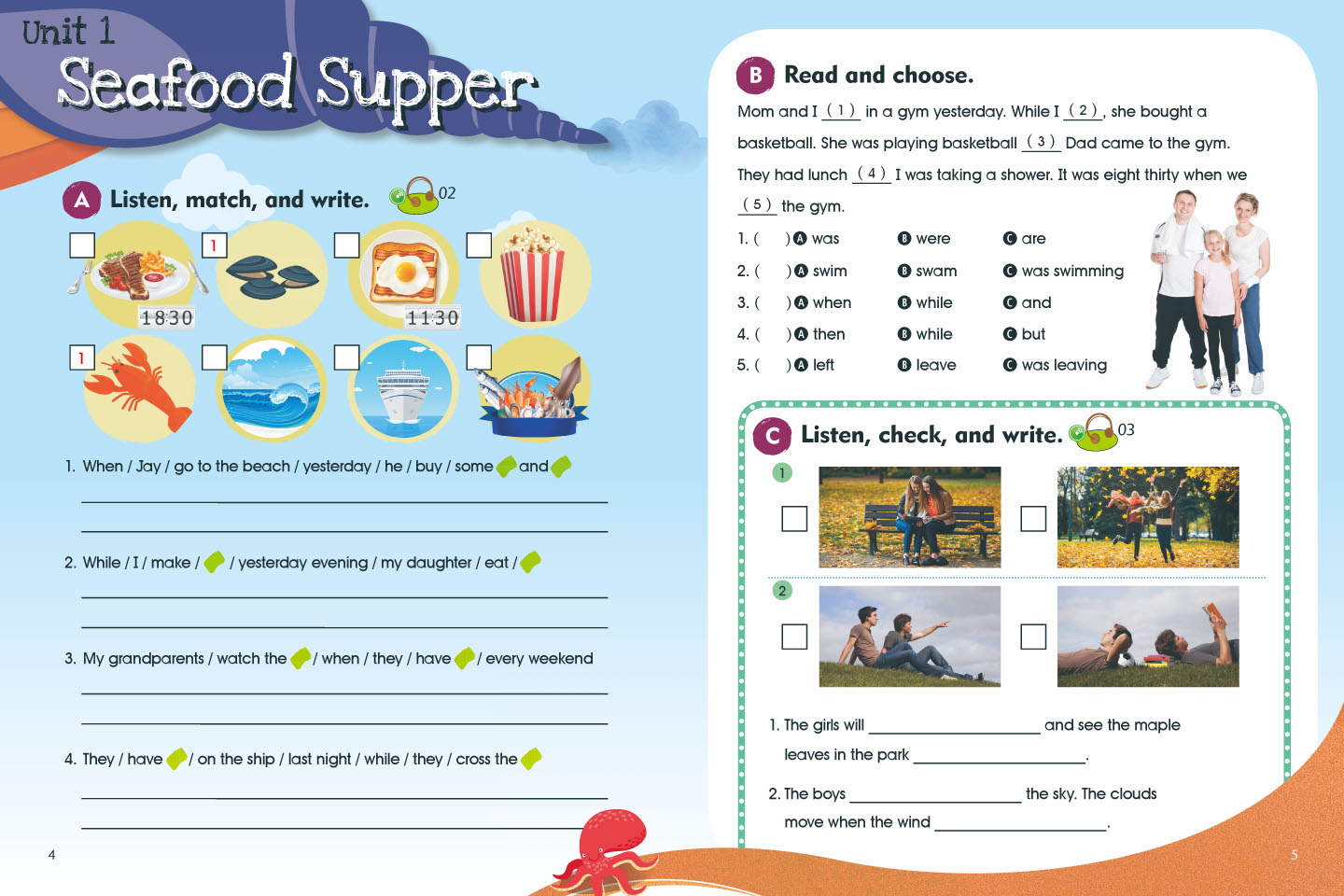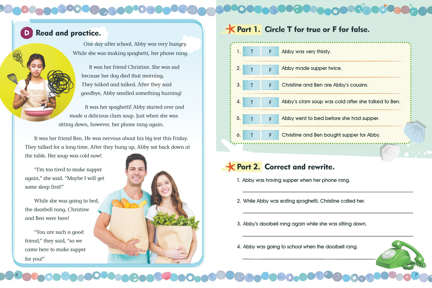 ●孩子到了中階學習階段,文法點加深,讀寫能力會漸漸被培養起來,孩子開始可以閱讀短文,練習引導式短文寫作,慢慢具備可以深度學習英文的能力,為下一階段做好準備。Book 7~8★學習者年紀:小學四年級~五年級