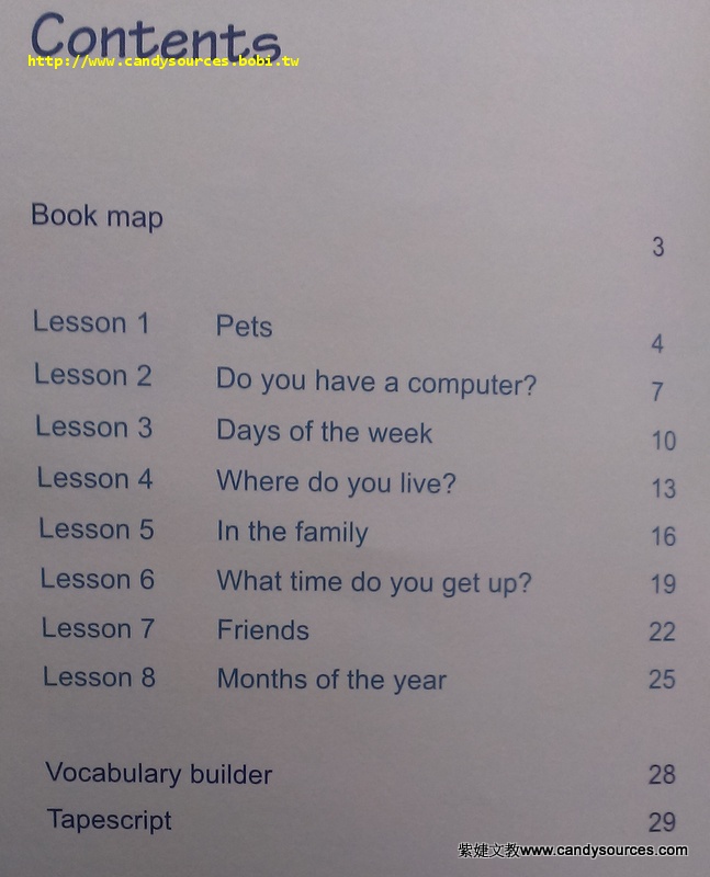 本套書是一系列以語言溝通的方式來開發英語口說和能力的技能,訓練學生表達自己的想法。這系列共分六冊,每階段的文法與字彙皆依照學生年齡與程度做編排。