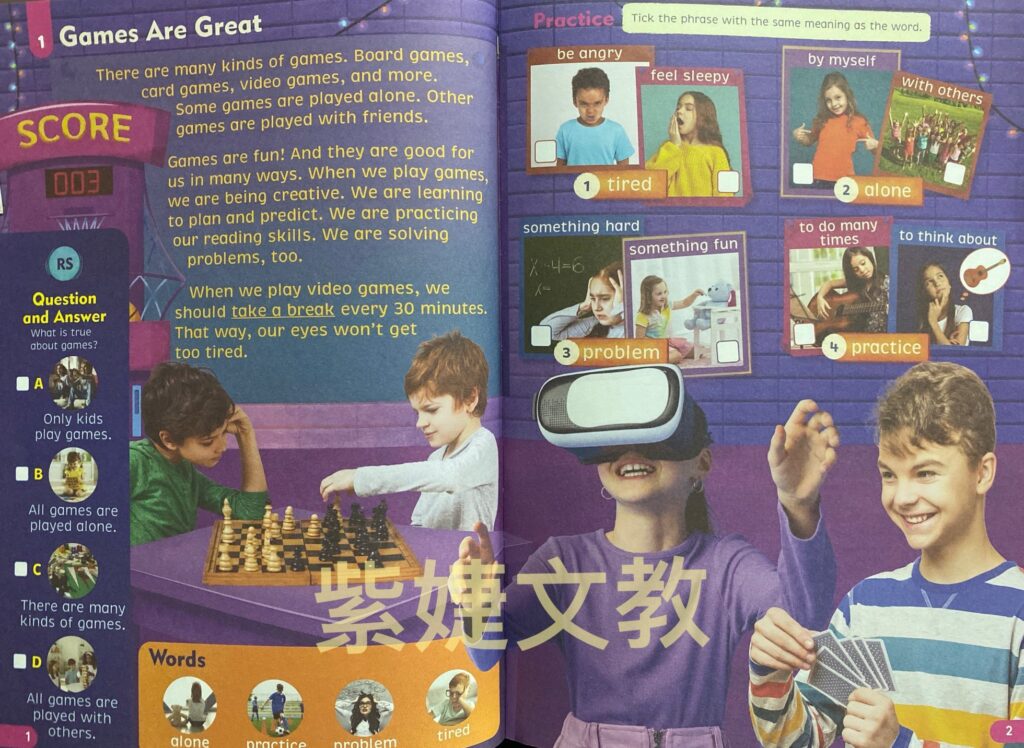 預測是孩子閱讀需要掌握的一種基本能力,根據已知內容做出預判,不是無端猜測,孩子透過圖片預測文章的內容之外,也能透過選項中的圖片閱讀句子,理解圖片的意思,提升閱讀興趣。