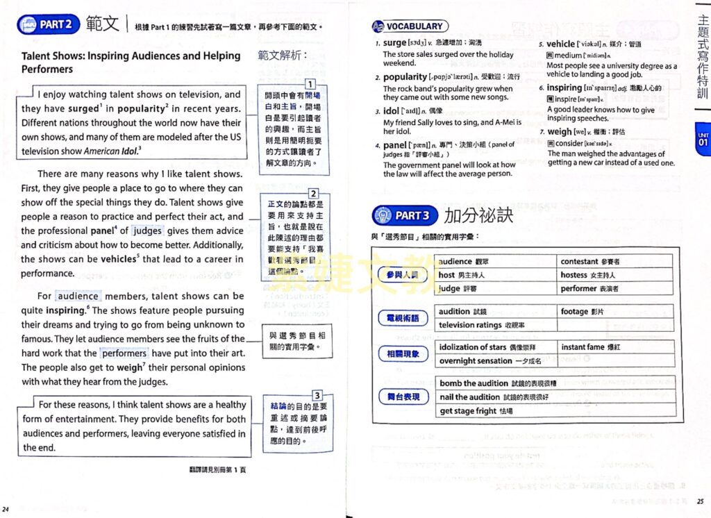 n 收錄25個單元,每個單元包含兩個不同主題來引導寫作練習。