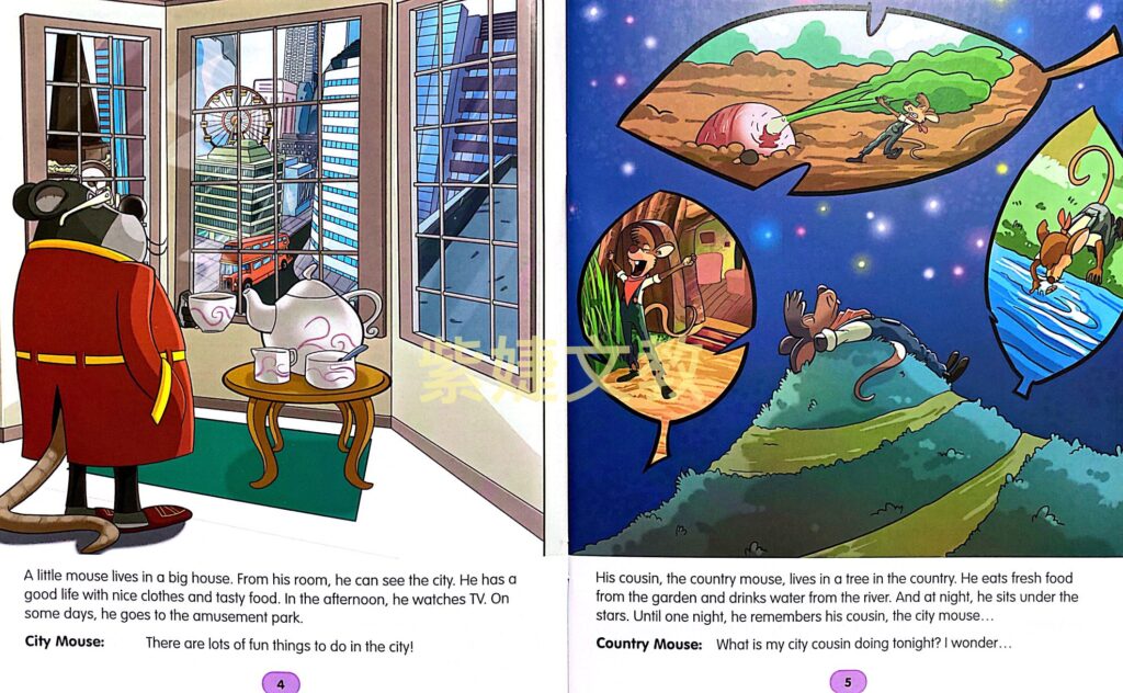 版面:精美大圖呈現閱讀篇章,激發學生的主題背景知識(background knowledge),同時亦降低學習焦慮感。練習題頁面則以簡潔的編排方式,讓教師及學生易於瞭解教學/學習重點。