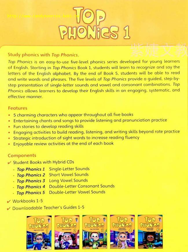 Top Phonics 6 an easy to use review of the essential sounds of English, developed for young learners who are already familiar with the English alphabet. In this book, students learn to recognize and say short vowel sounds, long vowel sounds, double-letter consonant sounds, and double-letter vowel sounds, Top Phonics 6 provide a guided, step-by-step presentation of vowel and consonant combinations. Top Phonics 6 allows learners to develop their English skills in an engaging, systematic, and effective manner.