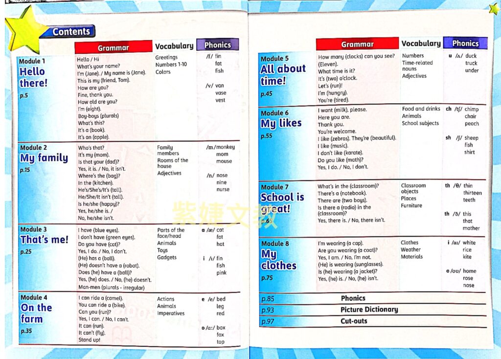 #Student Book (書 + CD)、Starter A, Starter B, Start C, 及Level 1-6共9冊。